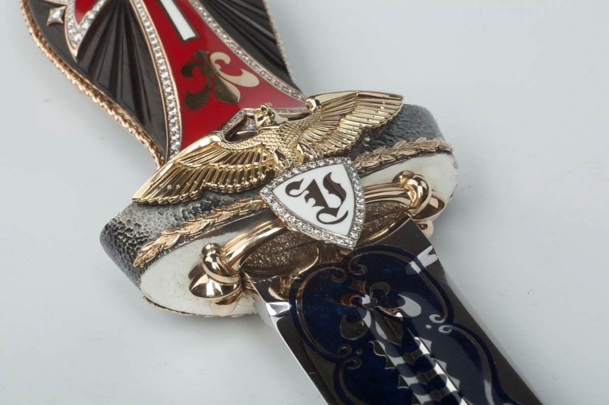 Клиента который нож заказал, в фейсбуке " ювд - ювелирных дел мастер" 5 к зелени ножик, но без рун к сожалению, зато с брюлями