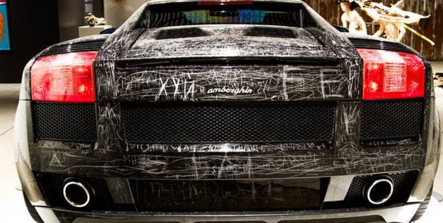 То игра , а это реальность. Музей в Дании , Ламборджини Галлардо за 170 тыщ енотов. Посетителям было разрешено выцарапывать на нем всё , что угодно. Автор идеи был доволен результатом . «Никто из нас не остаётся нетронутым, поскольку каждый незначительный поступок влияет на всю картину в целом» (с). Вид сзади.