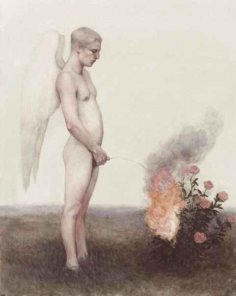 Нафига этот хулиган-стриптизёр на розы напалмом мочится? Наверно напиток вчера был слишком крепкий.....
