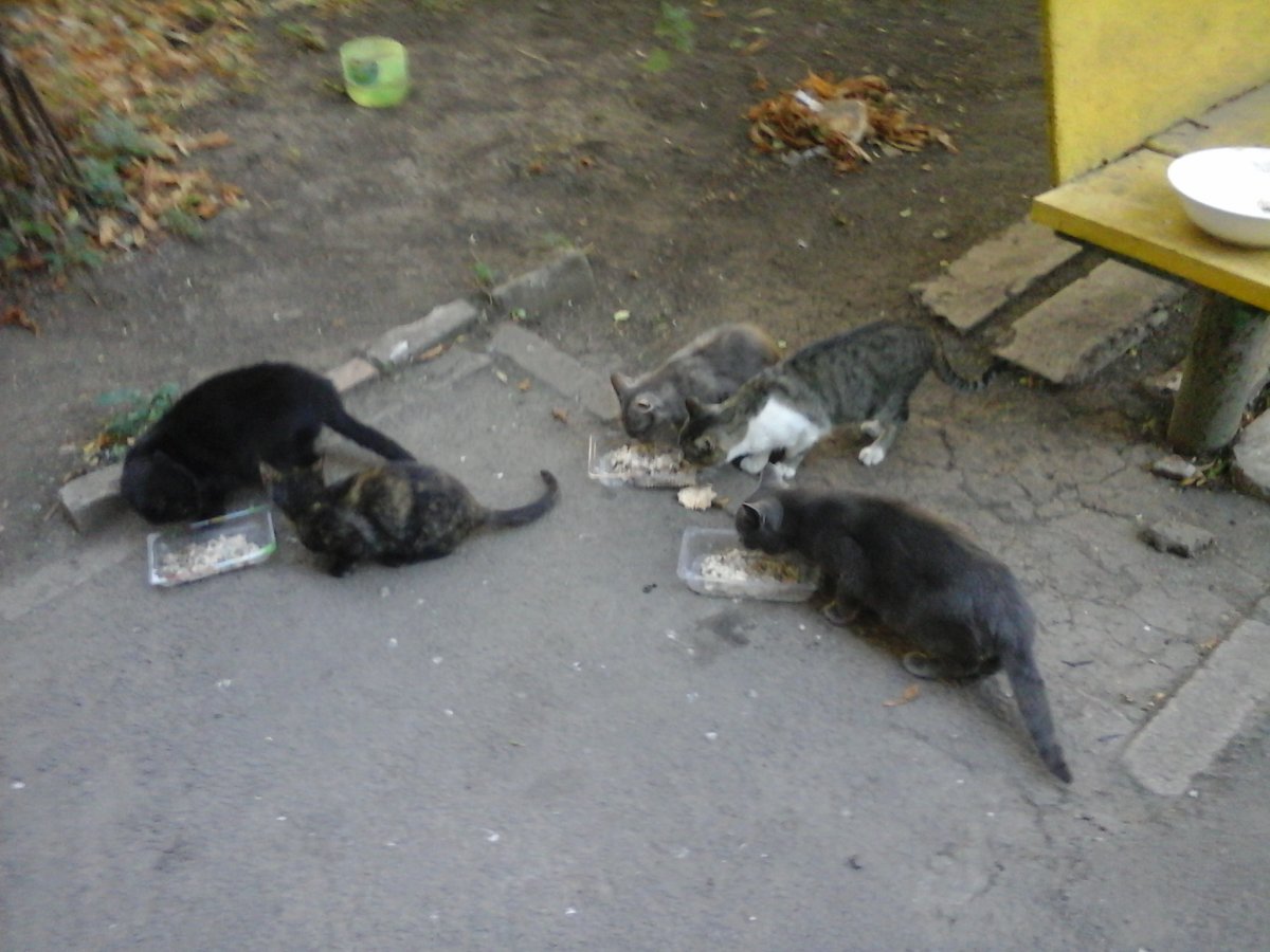 По странной иронии судьбы, у меня не кормится ни единого рыжика. :) Тока черные и серые котики. А рыжики- их страшные враги. Чес Слово. Так уж вышло. :) Вот моя основная банда. :)