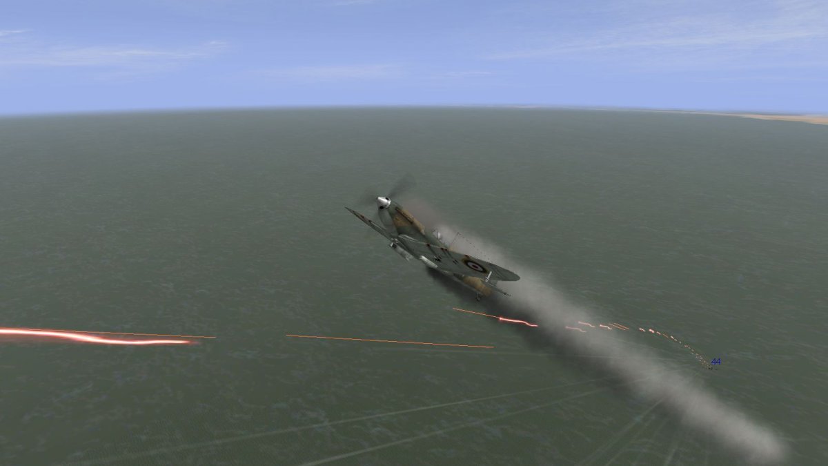 Я за RAF тружусь щас. Эмилио меня долбанул, как видишь, капитально. А я успел подставиться и с собой его забрал. Дело над Британией, 40й год кампания. Немец в лагерь, я снова в строй)) Люфтваффе "-2", как говорит Медведь) Вот, подловил он меня. На первых спитфайрах же обзора назад нет, я и попал в ощип: