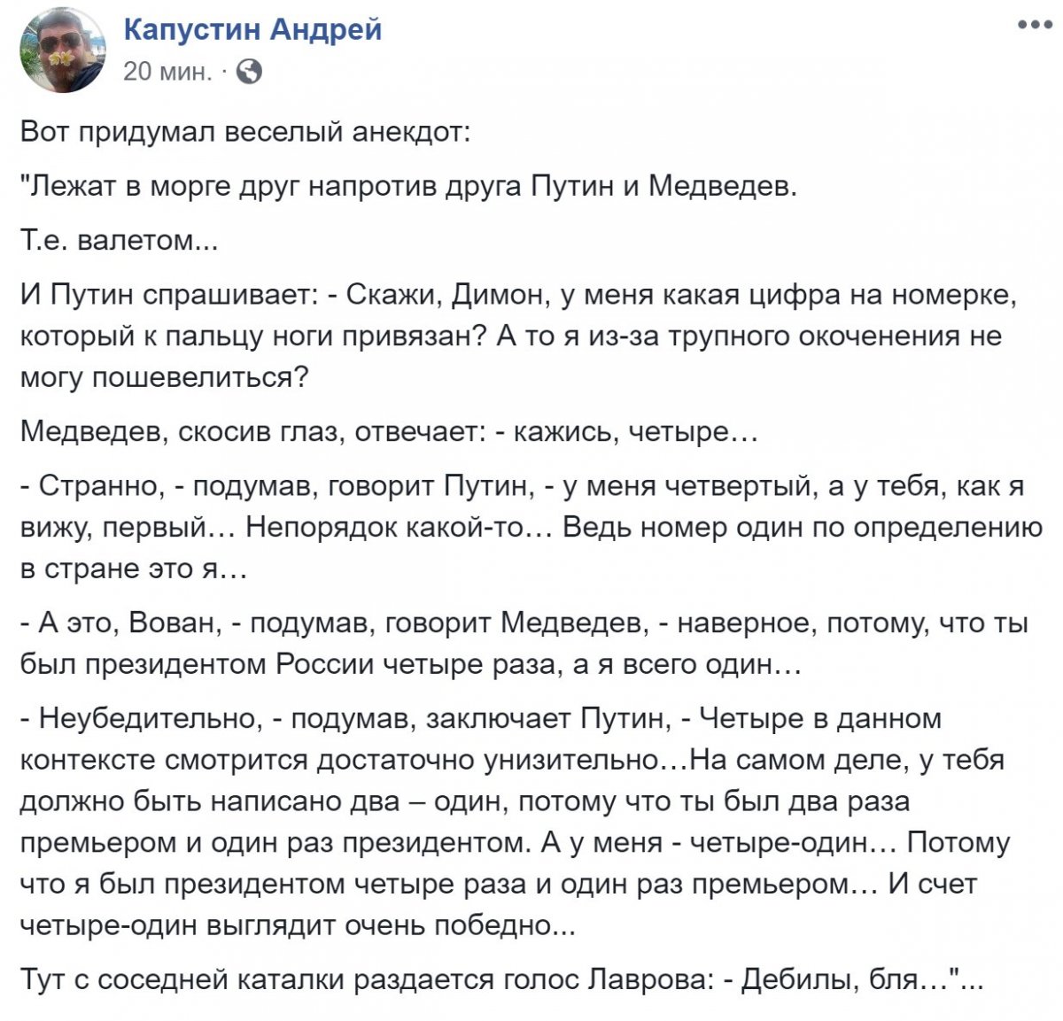 Три сестри одружились. Мама їм каже: - Не забувайте нас, пишіть листи. Ось лишень, якщо будите писати про секс, пишіть, що смажили картоплю. Так батько може прочитати і не те подумати. Перша дочка пише: “У нас все добре, грошей багато, з чоловіком проблем немає, нічого нам не потрібно, картоплю смажимо раз на рік.” Мама думає: “Не порядок”. Пише друга дочка: “У нас все нормально, грошей вистачає, смажимо каотоплю раз на місяць.” Мама думає: “Не порядок, але вже краще.” Пише третя дочка: “Грошей немає, хата пуста, жерти немає що, картоплю смажимо три рази на день, а коли картоплю не смажимо, він лиже пательню, а я смокчу ручку.”