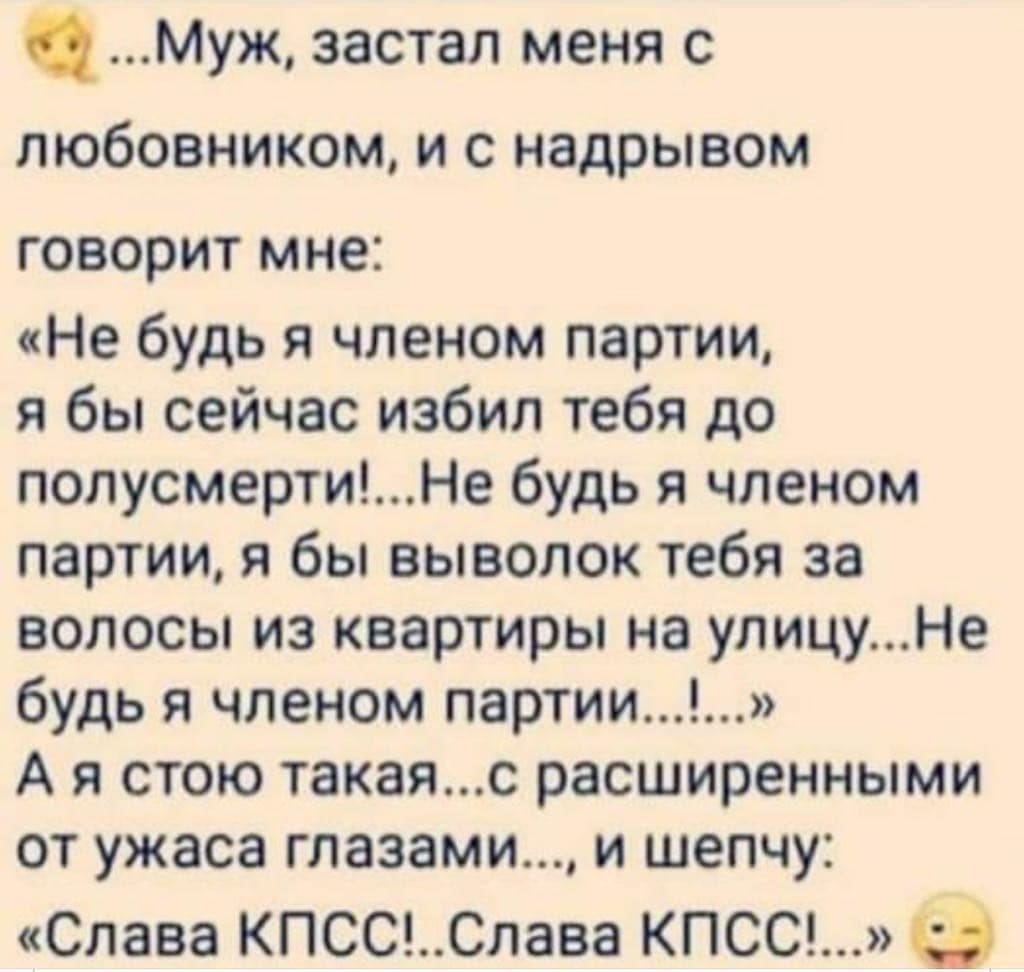 Женатый 15 лет молча берет пистолет, выходит, слышны 17 выстрелов, какая то возня... Возвращается весь вспотевший: - Какая то сука холостыми зарядила... Пришлось придушить.