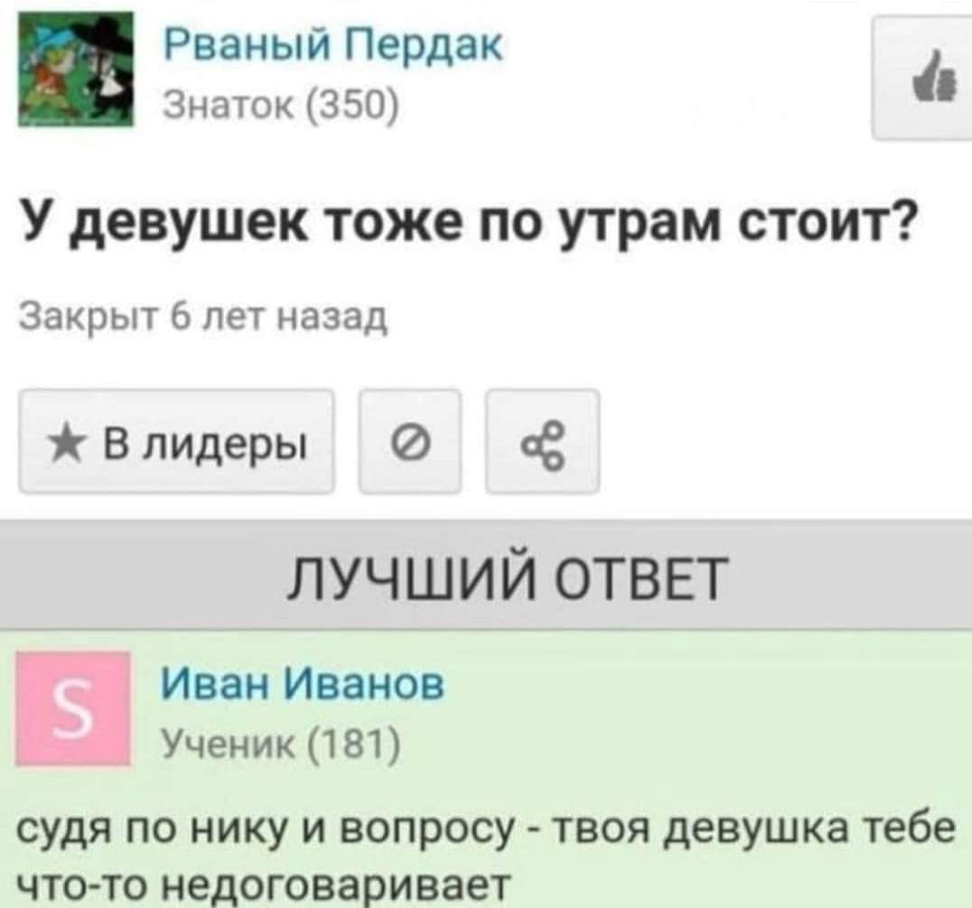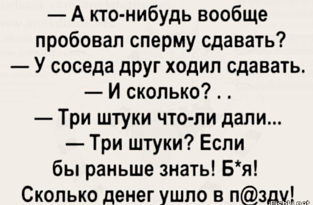 Врач сказал: «Джо, хорошая новость – это то, что я могу избавить тебя от твоих головных болей. Плохая новость – это то, что для этого потребуется кастрация. У тебя очень редкое состояние, из-за которого твои яйца давят на нижний отдел позвоночника, и это давление вызывает у тебя жуткую головную боль. Единственный способ снизить это давление – удаление яиц». Джо был в отчаянии. Ему даже жить расхотелось. Но выбора не было, и он согласился пойти под нож. Когда он вышел из больницы, впервые за 20 лет его не терзала головная боль, но его не покидало сожаление об утраченной части самого себя. Но потом он решил, что нужно начать новую жизнь. Он увидел магазин мужской одежды и подумал: «А не купить ли мне новый костюм?» Он вошёл в магазин и сказал продавцу: «Мне нужен костюм». Пожилой продавец смерил его быстрым взглядом и сказал: «Так… Рост 44». Джо рассмеялся: «Верно, откуда вы знаете?» - «60 лет в бизнесе». Джо примерил костюм,- он был впору. Пока Джо любовался собой в зеркале, продавец спросил: «Как насчёт новой рубашки?» Джо подумал и согласился. Продавец взглянул на Джо и сказал: «Так. 34 рукав и 16 с половиной шея». И вновь Джо удивился. «Верно, откуда вы знаете?» - «60 лет в бизнесе». Джо примерил рубашку, и она сидела великолепно. Когда Джо поправлял перед зеркалом воротничок, продавец спросил: «Может быть, вам нужны новые ботинки?» Джо понравилась эта мысль. Продавец взглянул на Джо и сказал: «Так… 9-1/2 E». Джо был потрясён. «Верно, откуда вы знаете?» - «60 лет в бизнесе». Джо примерил ботинки, и они ему подошли. Джо прошёлся по магазину, и продавец спросил: «А нижнее бельё?» Джо подумал и согласился. Продавец сделал шаг назад, смерил взглядом талию Джо и сказал: «Так… Размер 36». Джо расхохотался. «Ха-ха! Вот я вас и поймал! Я с восемнадцати лет ношу 34-й!» Продавец покачал головой: «Вы не можете носить 34-й. 34-й размер нижнего белья придавит ваши яйца к нижнему отделу позвоночника, и у вас будет жуткая головная боль».