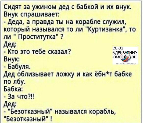 Мужик с разбитым ебалом, рассказывает другу, как опиздюлился... - "Познакомился с дамой, пошли к ней домой. Нагнул я её над кухонным столом и давай натягивать, и тут вдруг слышим - открывается входная дверь. "...