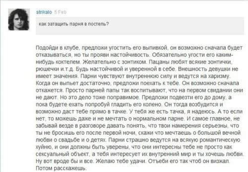 Ну вот, камрады! Пока мы тут все высказываем свои мнения, делимся опытом и историями... А бабы то уже разработали методичку как себя вести с мужиками!!!!! И толково же все выписано... прям как законы в Верховной зраде