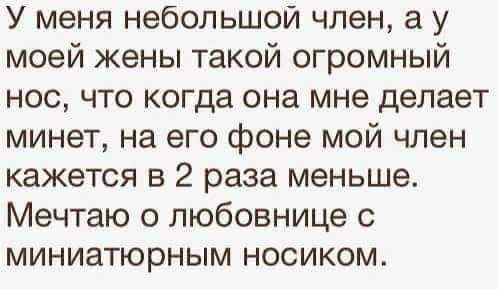 Доброго, анекдот в тему. Жена накрывает стол ждут гостей. Муж в одних трусах на диване смотрит телик, жена пробигая мимо говорит: - ты бы хоть оделся, гости вот вот придут. - ну и пусть смотрят как ты меня кормишь! - тогда и трусы снимай, пусть посмотрят за что тебя кормить! Я не голодаю, поверьте и три дочери на воспитании. С Уважением.