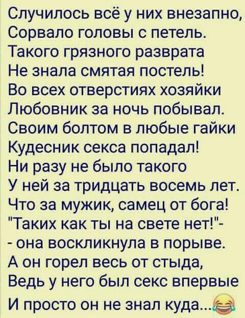 Ну все, камрады! Все бабы будут наши - и молодые, и не очень!!! Разработана Методичка - так сказать настольная памятка в амурных делах! Действует безотказно, как безвиз!!!!!☝️ Пользуйтесь, на здоровье! Мне не жалко))