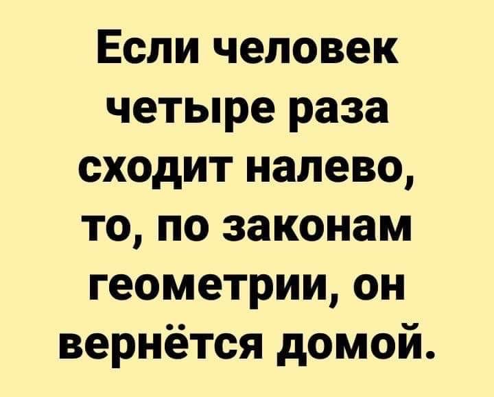 Если женщина четыре раза сходит налево, то по закону геометрии она вернётся домой к маме в Кацапетовку. :smile_8: