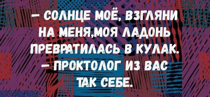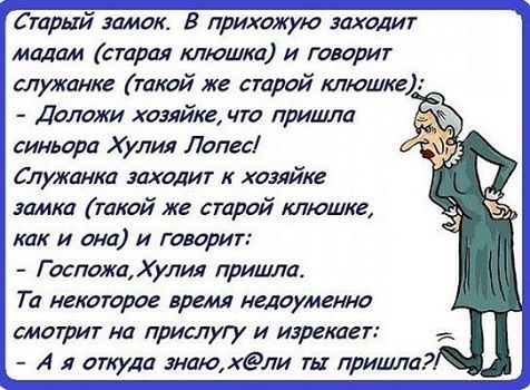 Наташа Ростова спрашивает у Ржевского: - Поручик, а Вы любили когда-нибудь? - В общем, да. Е%ал-с - Нет, я говорю про нечто святое. - В монастыре, е%ался! - Нет, я о чистом чувстве. - И в бане е%ался! - Нет, я о высокой любви. - И на колокольне е%ался! - Да я же о том, что бывает один раз, и на всю жизнь! - Нет... Вот сифилиса не было...