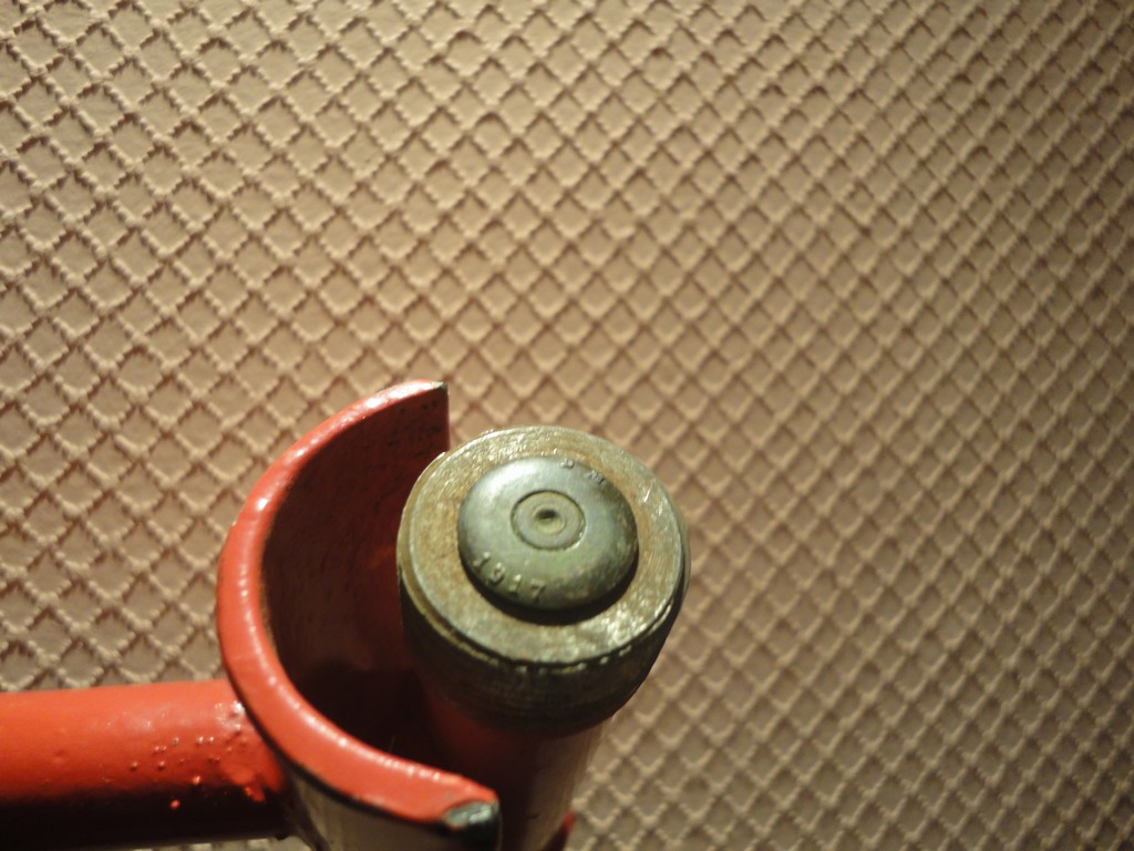 Вот зафоткал свой "прибор" для извлечения пуль без повреждений дульца гильзы (одно но - гильза должна быть не гнилой иначе рвет по горлышку). Вобщем кинетический молоток, изготовлен из металлической болванки на токарном станке под мосинские и маузеровские патроны (для патронов с каннелюрой изготавливается разрезная шайба). Диаметр в средней части (где приварена ручка) 22мм, думаю достаточно и наверное выдержит даже разрыв пристрелочной пули, также для пущей безопасности был приварен защитный щиток из 3мм стали. Работа проста и в точности как у пластиковых кинетических молотков, только я дополнил конструкцию - есть отверстие для сверления (кондуктор) гильз и типа бойка в крышке-прижиме патрона для пробития капсюля. Общий вид: Открутил крышку удерживания патрона: Так выглядит крышка изнутри без бойка для пробития капсюля: Крышка и боек: Фото крышки изнутри со вставленным бойком, накол получается реалистичным: Патрон заходит что родной и прижимается крышкой на резбе, рапатрониватель готов: Также чтоб не рассыпать всюду порох была изготовлена резиновая заглушка которая вставляется со стороны удара молотка.