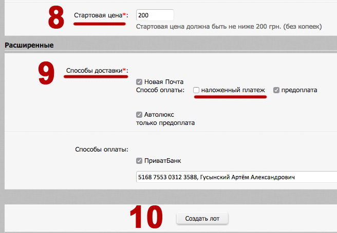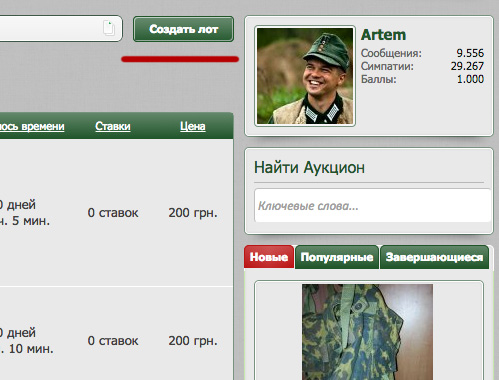 F.A.Q. Как создать новый лот?