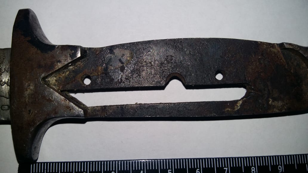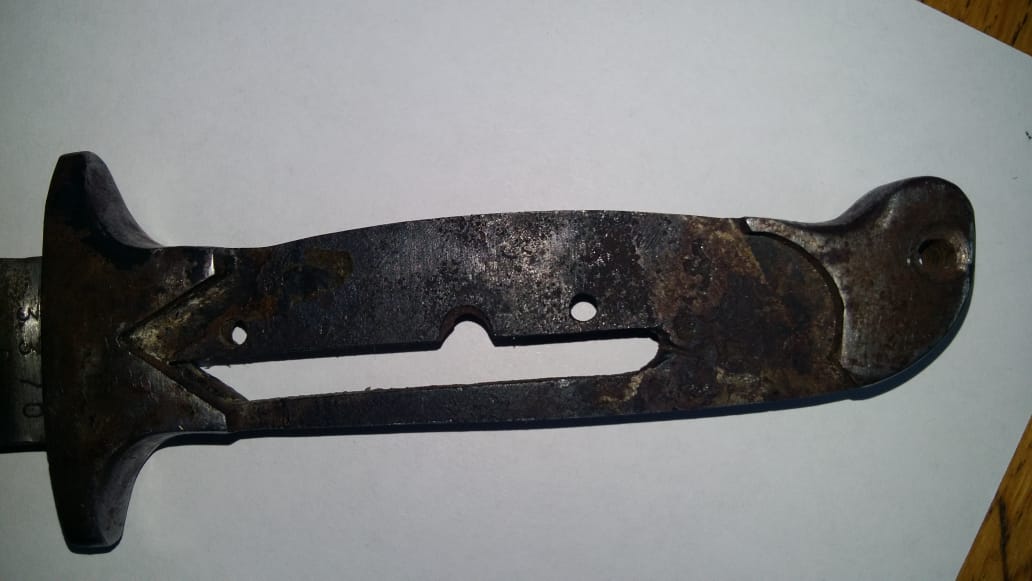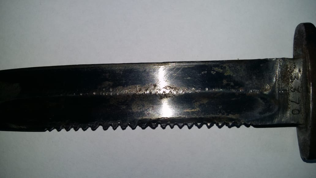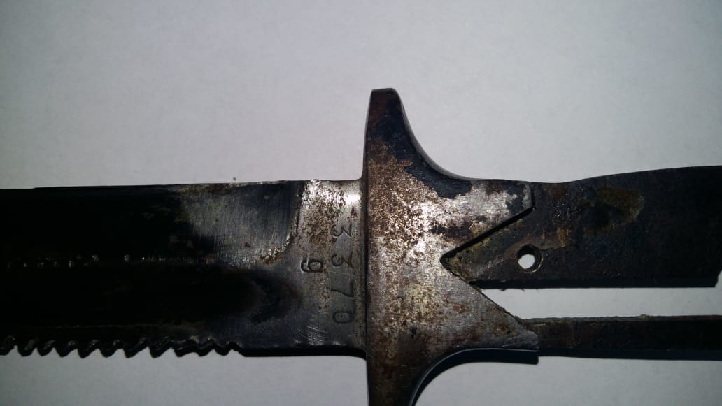 Помогите определить модель штыка. На: длина лезвия -185мм, ширина-24мм, общая длина-300 мм. Хочу сразу о метить, что многие говорят о том что похож на штык- нож болгарского дневального. Но!!! Гарда отличается, дол другой, и наличие пилы. Клеймо по каталогу совпадает с немецкими клеймами. Высказывание мнения. Спасибо всем!