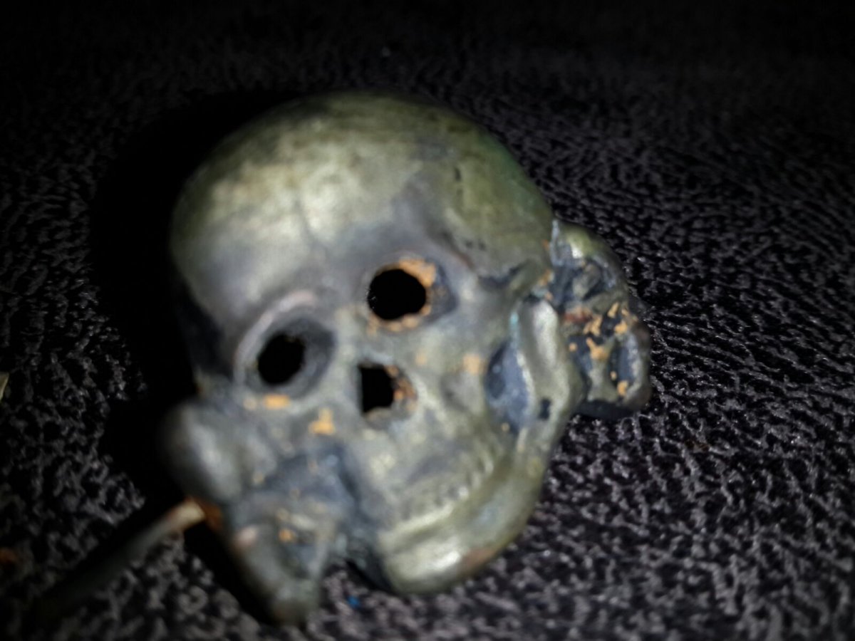 Тут больше вопрос зачем такое покупать?)Впарить кому-то?) А так, черепушка просто безобидный сувенир.