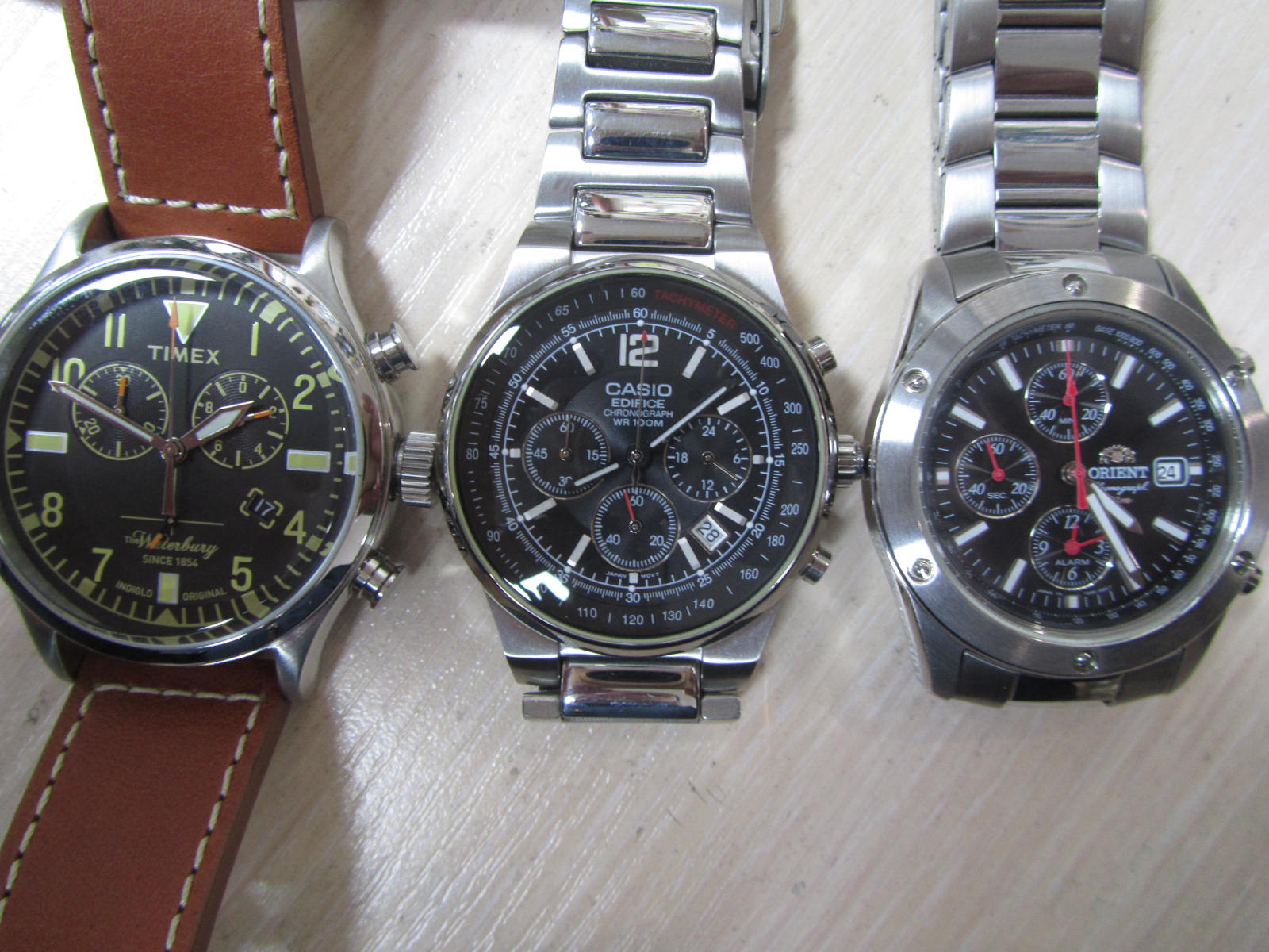Я наверное около пятнадцати лет часы как то не ношу, а товарищи видя это, иногда дарят мне их на день рождения, ну а я их слаживаю в ящик или передариваю, так ни одни ни разу и не одел Сейчас остались такие (какого они года, сказать не могу, но наверно дарились примерно от 6 до 10 лет назад, потому что у некоторых уже менял батарейки, а на некоторых батарейки сели) Они лежат дома у родителей, был у них в гостях, сделал ревизию +