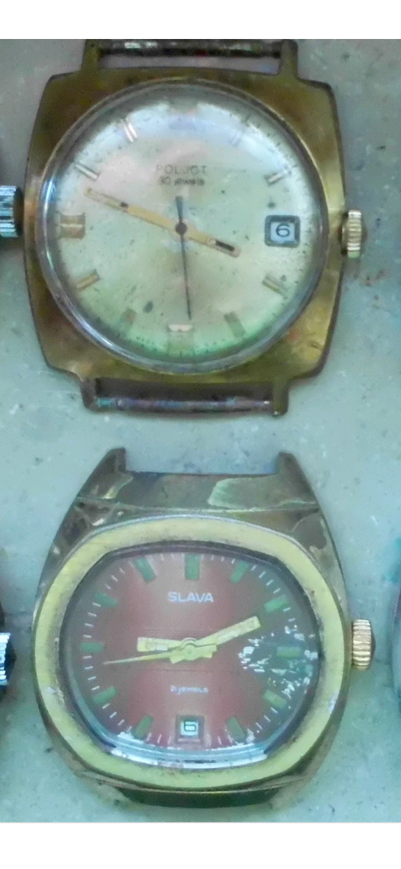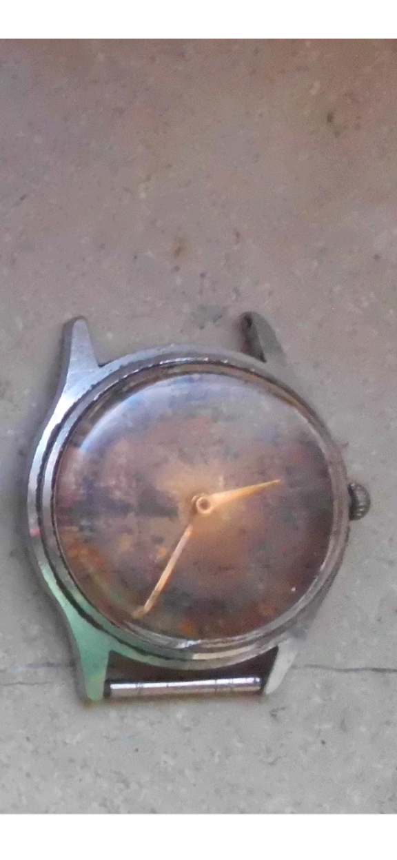 А ось яскравий приклад того, про що ми нещодавно розмовляли. Була в нас дискусія, що краще радянські чи бюджетні японські годинники. Непогані буди механізми у вітчизняних виробників. Ну а все решта, це точно не про нас. Японські і через півстоліття залишаться ''в формі''. Пам'ятаєте, було тут нещодавно фото ''Сітізен'' 1963 року? Досі бодрячком. Ну, а вітчизняні проходять цей тест, на жаль, не завжди. Чи герметичність корпусу підводить, чи якість покриття циферблату і корпусу, але...Але. Факт неприглядний. Прошу вибачення у власника фото, він до ціх пошкоджень не має відношення. Просто недосконалість вітчизняних виробників з роками проявляється: І ці явища не поодинокі, на жаль. Із сейками або орієнтами такого ніколи не бачив.