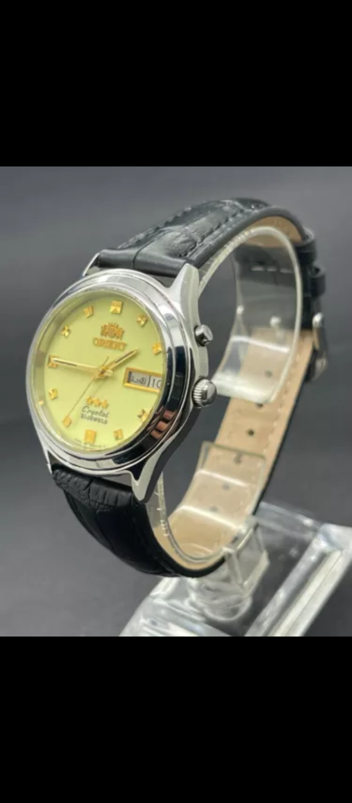В моєї дружини була жіноча модель Орієнту з арабською другого мовою. Я про нього нещодавно писав, це той що ''пішов вразнос'' після недолугих спроб заводити його від руки (на ньому була така опція разом із автопідзаводом). Мабуть, щось перекрутили. Доречі, колір циферблату теж був золотаво-жовтий.