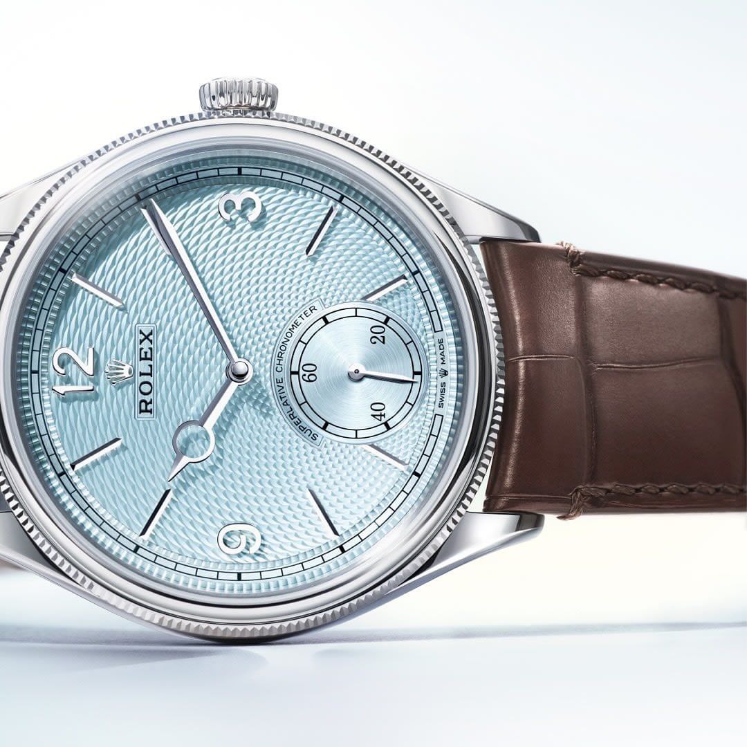 Говоря о классических часах, Rolex выпустили часы Perpetual 1908 из платины 950-й пробы с ледяно-голубым циферблатом.