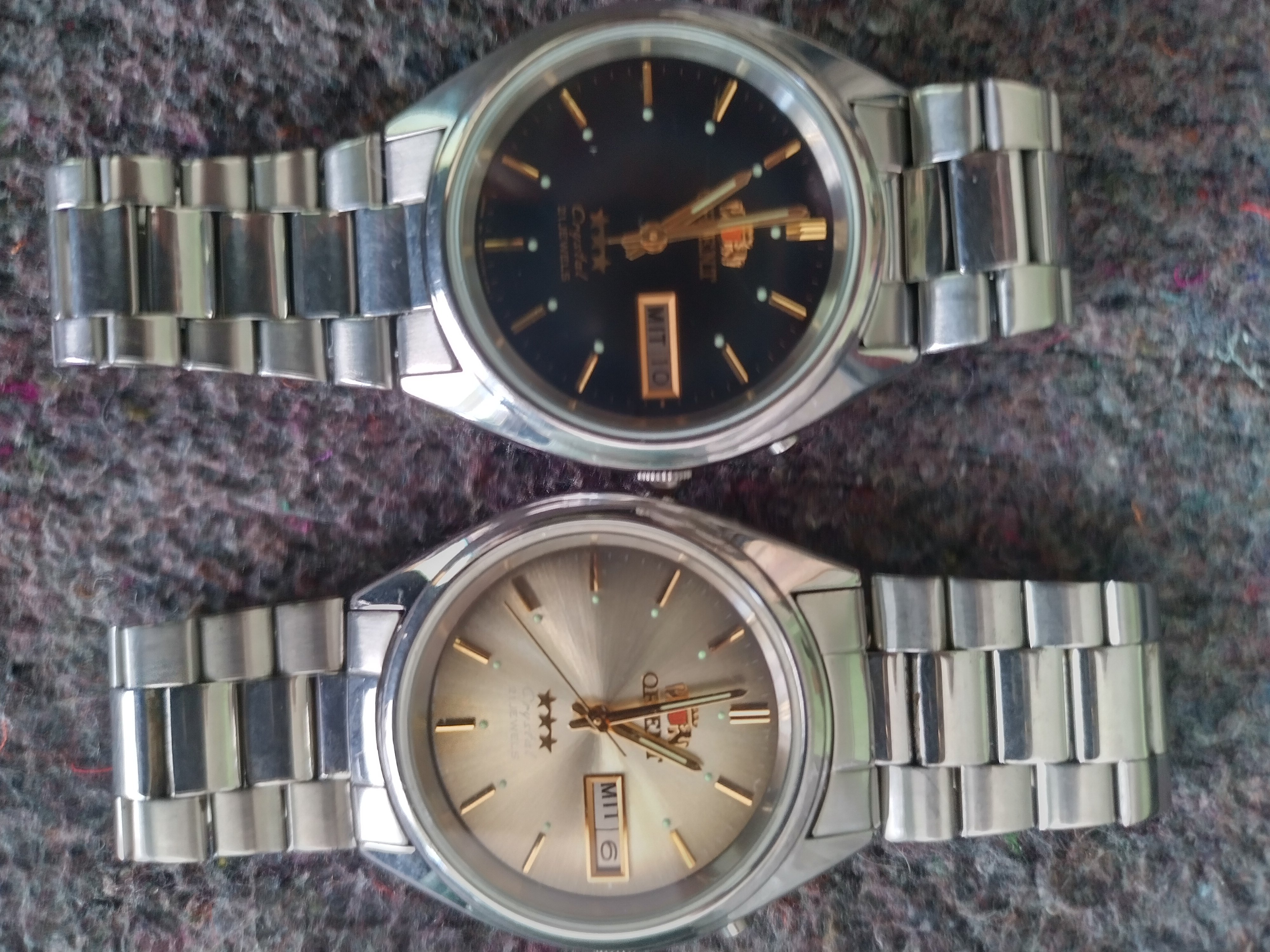 В лихі 90-ті за костюмно-ділові правили і звичайні тризіркові Орієнти! І чудово з цим справлялися. Ось такого штибу, особливо той, що із світлим циферблатом. ТОДІ вони ЩЕ сприймалися як символ мужності і багатства: В ті часи далеко не всім офісним ділкам були доступні справжні швейцарські або верхній ''хай-енд'' японських. Пам'ятаю, був у 1997 році у відрядженні в Київі, в міністерстві промполітики. У чиновника, що зі мною спілкувався з під рукава піджака виглядав майже такий, або навіть такий самий, ''тризірковий'', із золотавим циферблатом Це зараз там без Longines ніяк, а тоді ще діловий світ України був більш демократичним!