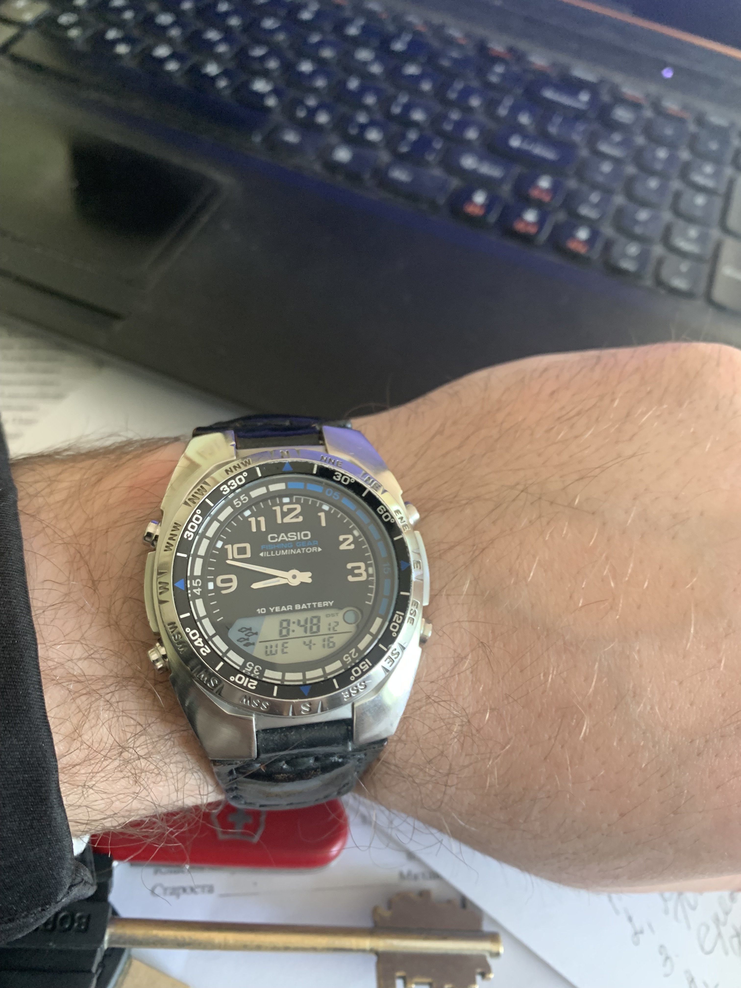 Всіх вітаю. Купив собі такий касіо. В народі називається годинник рибалки. Як то кажуть купив для душі. Подобається дизайн і функціонал, хоча я не є фанатом електронних годинників.