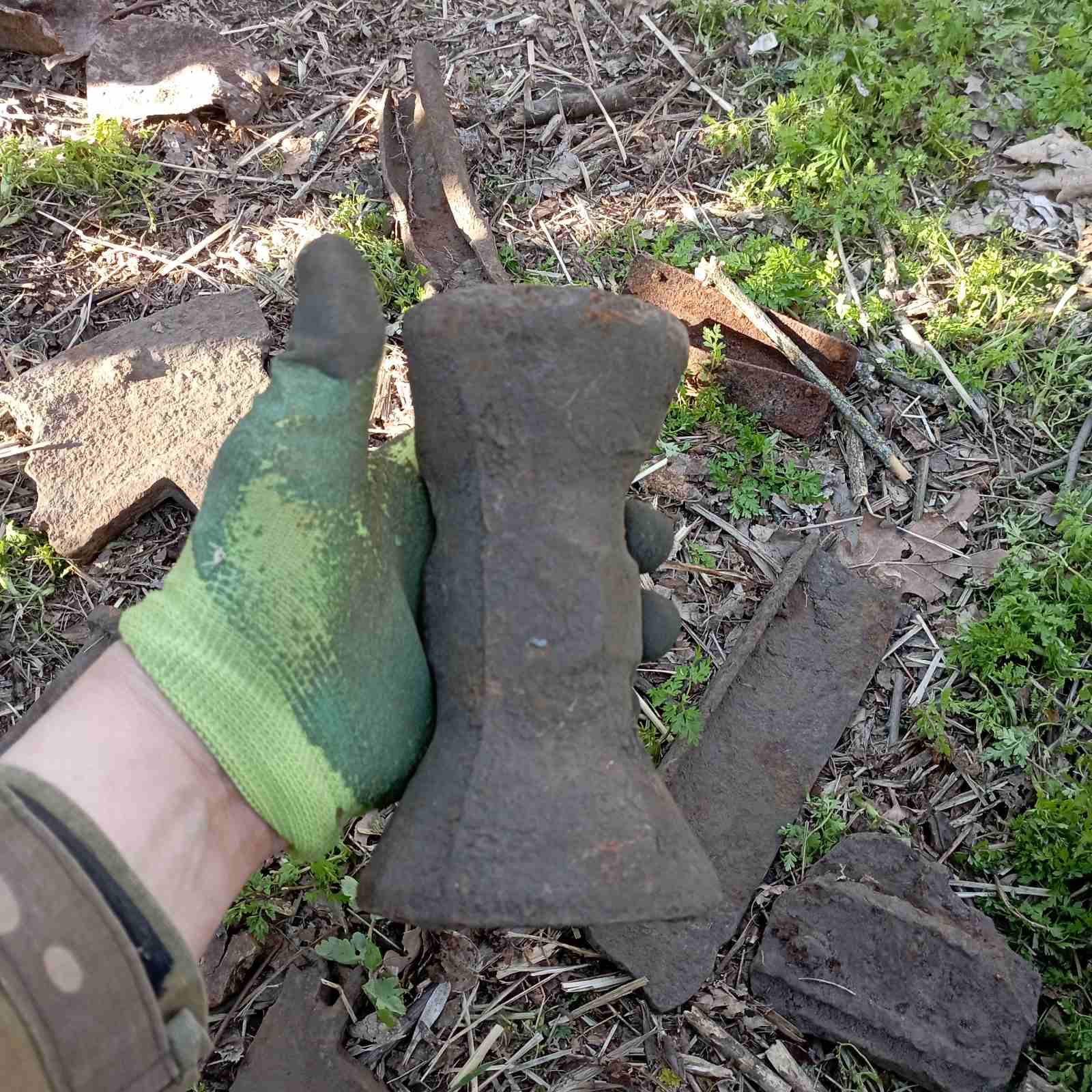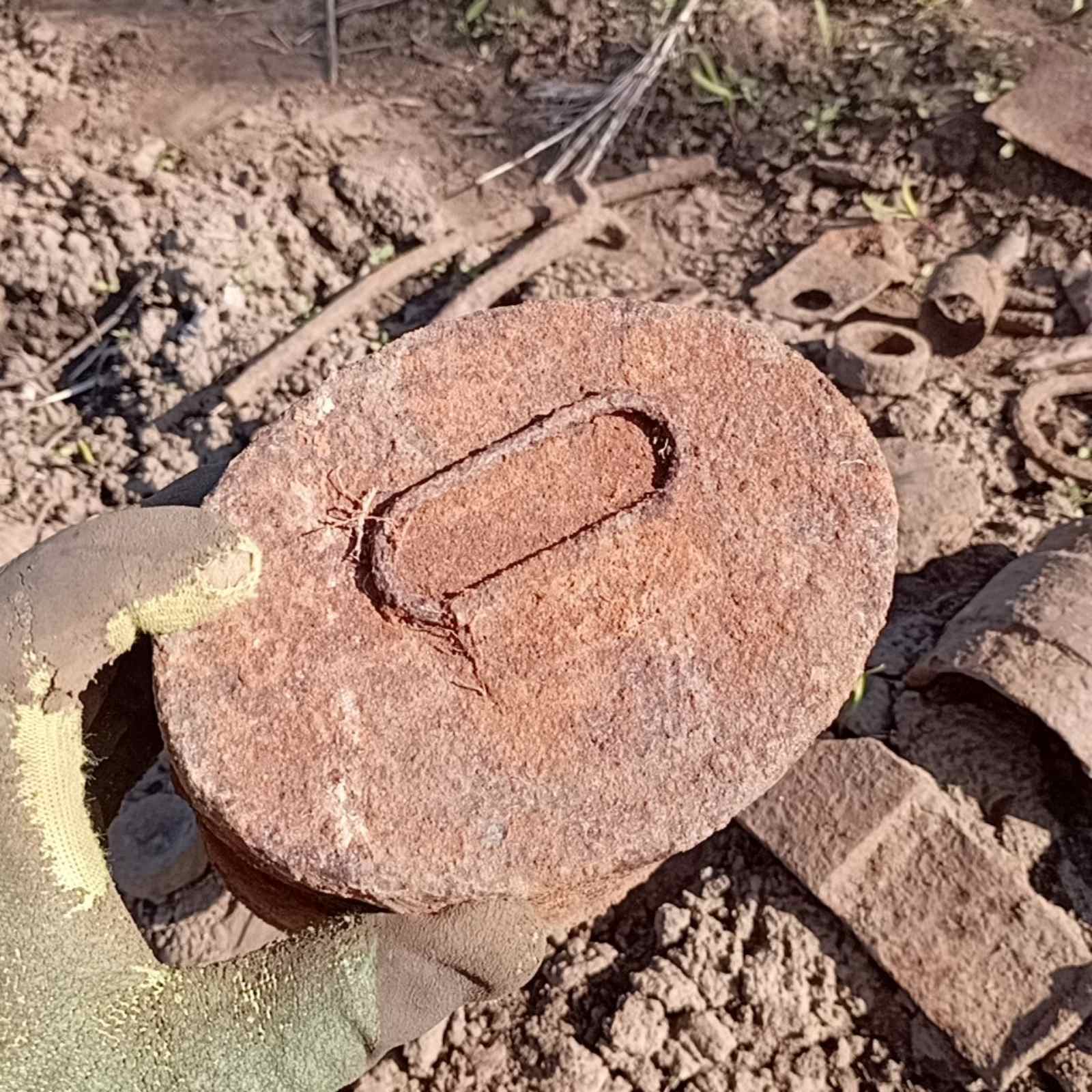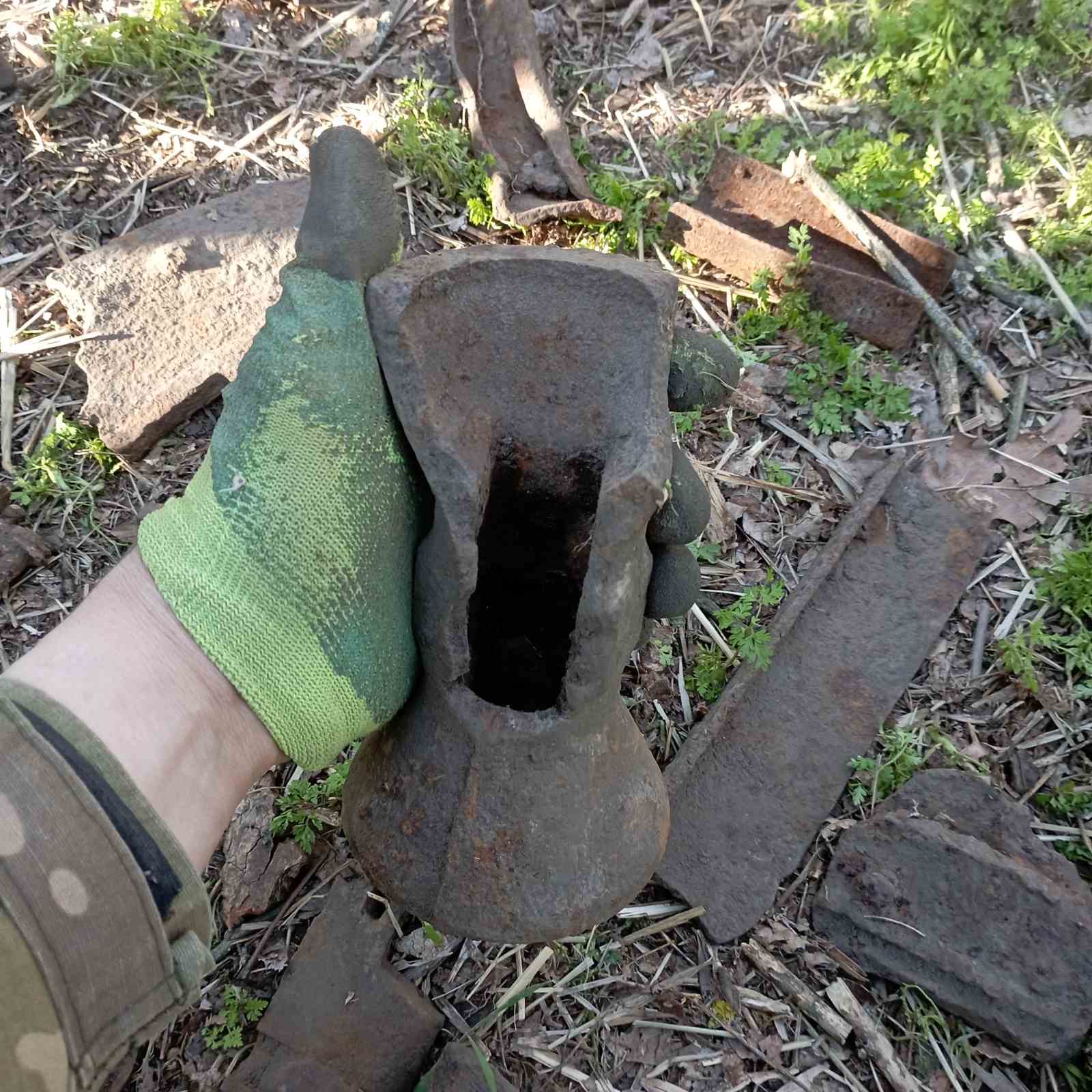5. З болота.Стальний, бо важкий.Такий попав вперше.Клеймо мабуть є під фарбою, видно першу букву "...