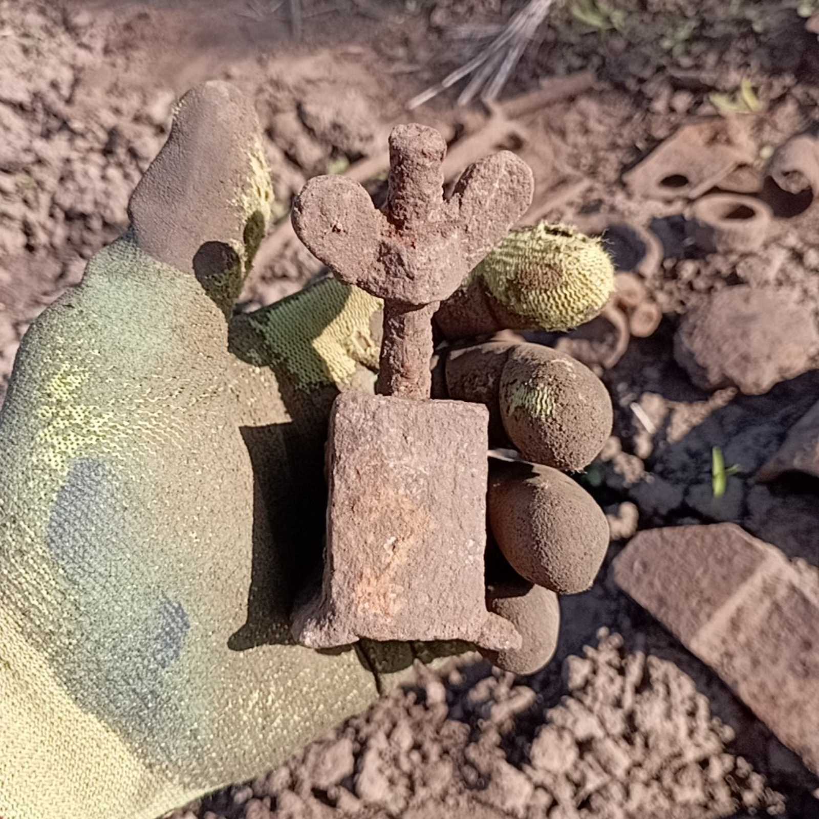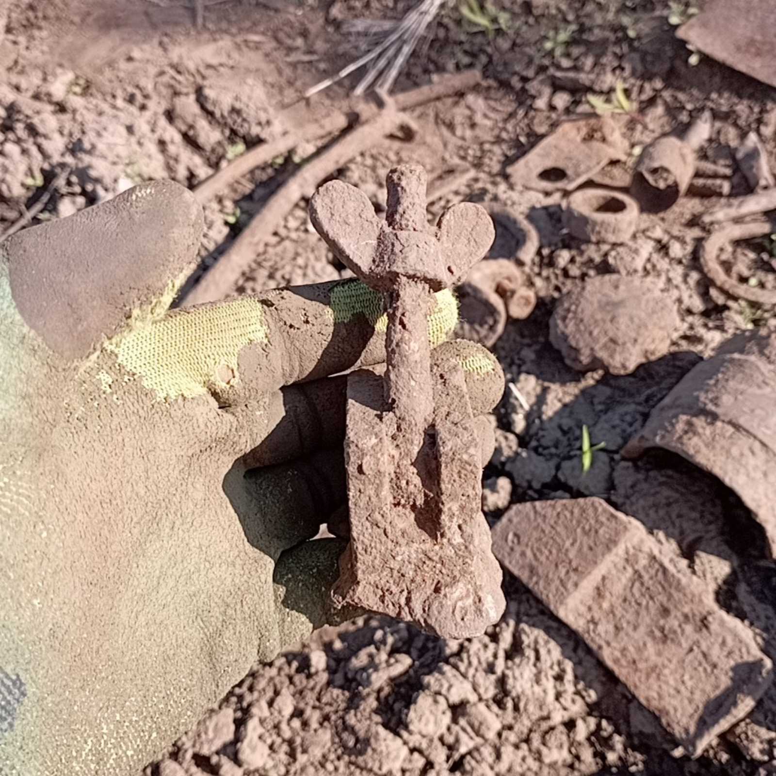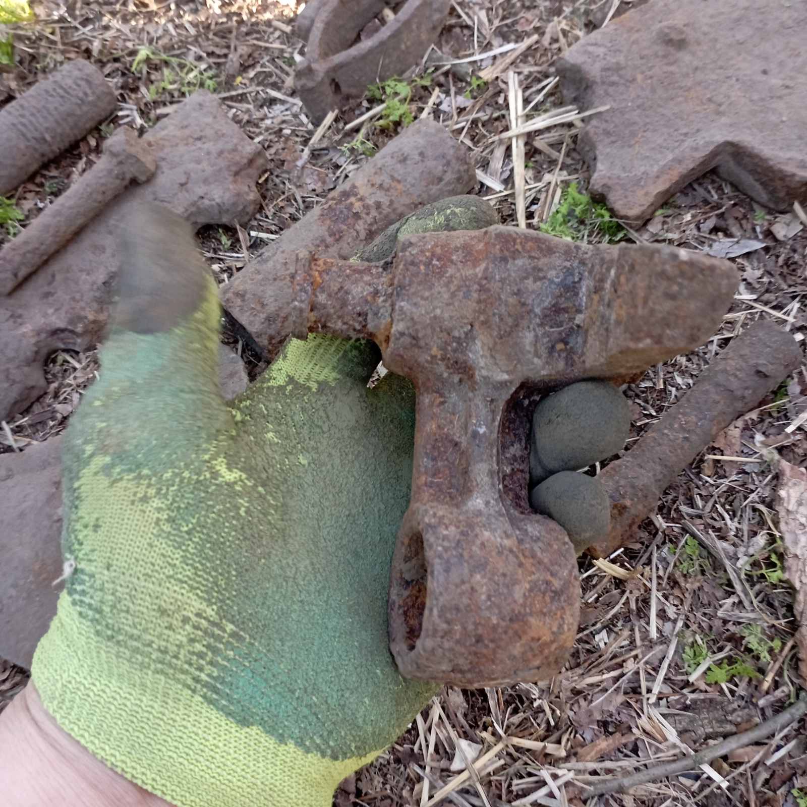 5. З болота.Стальний, бо важкий.Такий попав вперше.Клеймо мабуть є під фарбою, видно першу букву "...