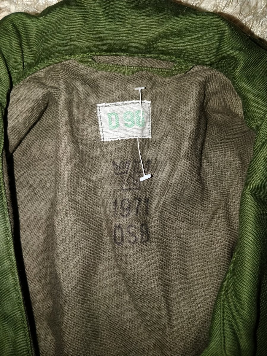 Пошукав у своїх файлах, в розділі шведської уніформи моделі М/39 знайшов фото: шведську спідню сорочку за такою ж короною, як на кальсонах: та шведський же мішок для речей з такою ж короню та маркуванням Т.3: Теж подивився у своїх файлах по датських етикетках з уніформи - корони іноді досить різні: До речі, виявився один лайфхак, хочу поділитися: якщо є етикетка зі складом тканини, і там є бавовна, то у шведів вона пишеться - BOMULL, у данців - BOMULD. Це Це теж може полегшити розрізнення.