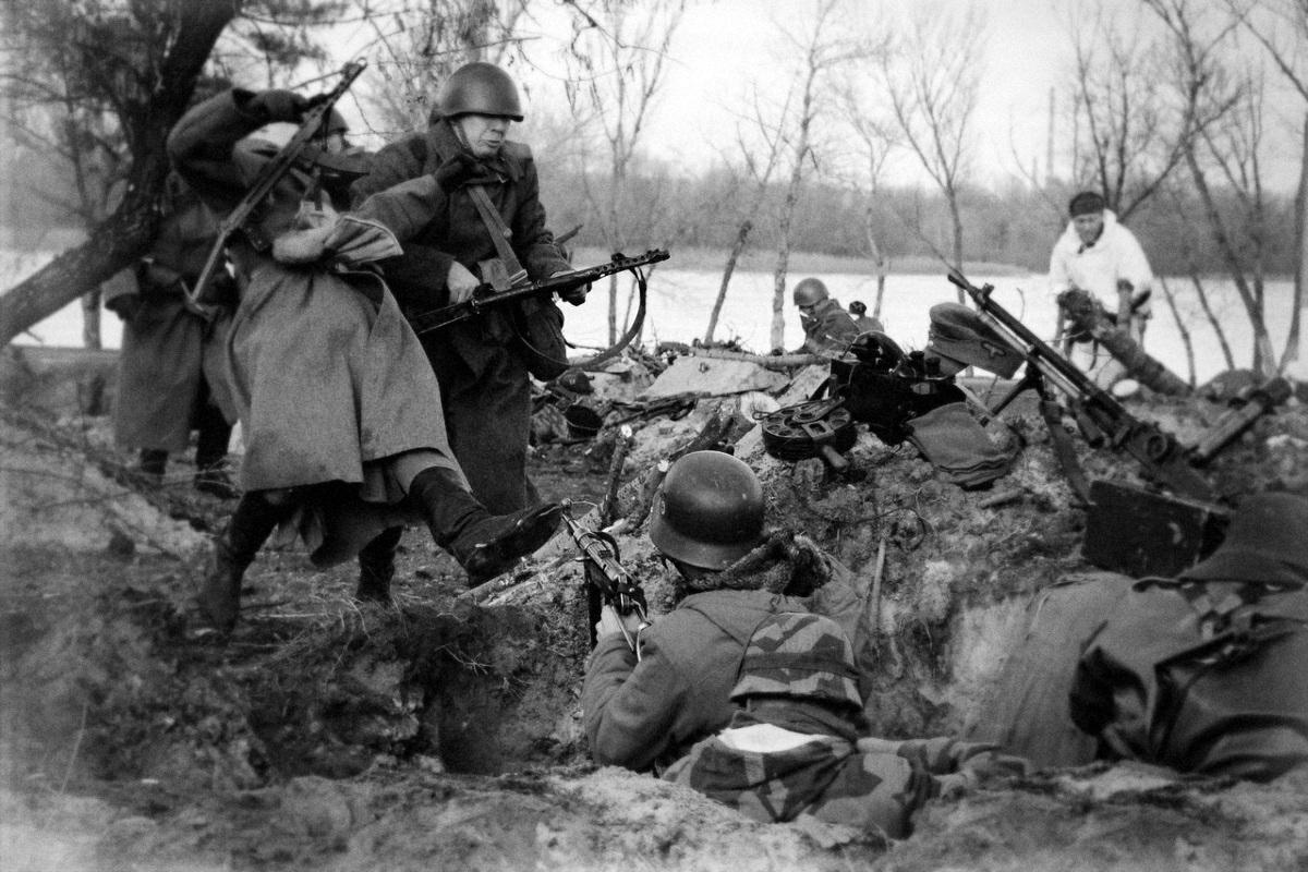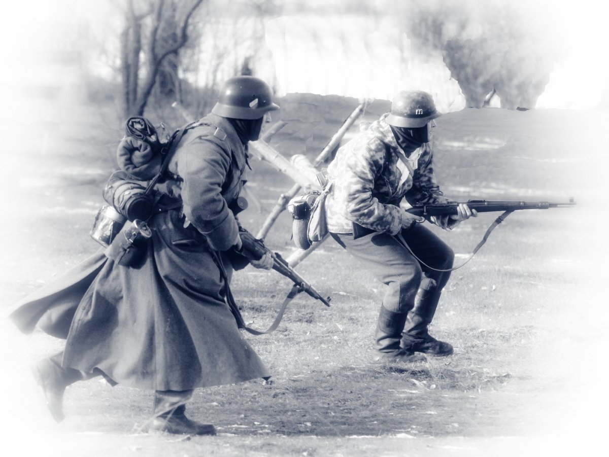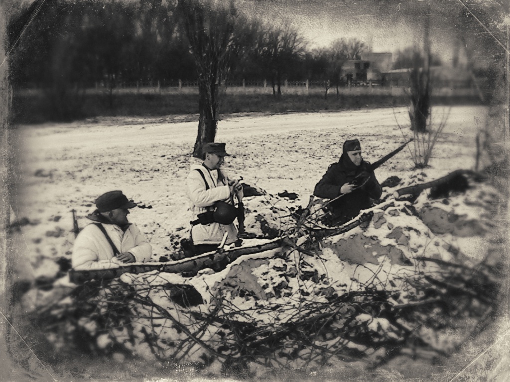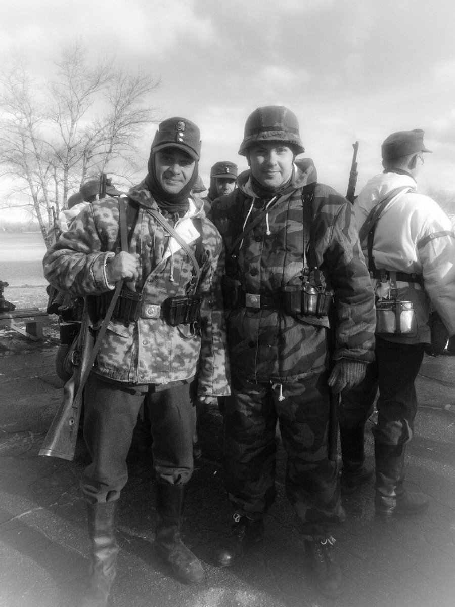 При изучении военной хроники,фото архивов,разговоров с ветеранами можно сделать соответствующие выводы,военная форма в зимнее время была смешаной,да,не удивляйтесь,вы тоже это знаете так чего?)Зимние маскхалаты выдавались спецподразделениям и спец ротам,определенные роты,максимум один бат. мог оснаститься зимними маскхалатами,все это делалось для спец.действий ну и разведки тоже.Ватные комплекты и штаны выдавались для бронетанков,артиллерии,и некоторых других видов войск ах да,водителей забыл.Что бы было понятно,войска,допустим батальоны или роты,тягали с собой максимум шинели,остальное они с собой не тягали.И если к примеру, при походе войск осенью резко пошел снег,то у них нет комплектов зимней одежды,все они получают со временем,так оно и есть,и тогда на всех не хватало,кому в первую очередь выдавали описывал выше.Так и с техникой,красим и не красим в белый).А что касается аутентичности то можно вот что,подсумок репарация у тебя,сними его,пусть лучше в кармане ХП шки будут,нет фляги РККА,ну не одевай послевоенную,пусть будет минимум но нормальный,но если дело касается 41-го,извините,там все четко надо,тут и я бессилен)Главное что бы мы развивались,советовали и помогали нашим камрадам не смотря что у него вермахт)Давайте так и дальше встречаться и проводить отличные рекконы и тактитки,просто встретиться и порадоваться за наших братьев по оружию.Я думаю больше нечего добавлять.