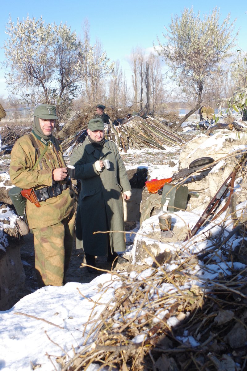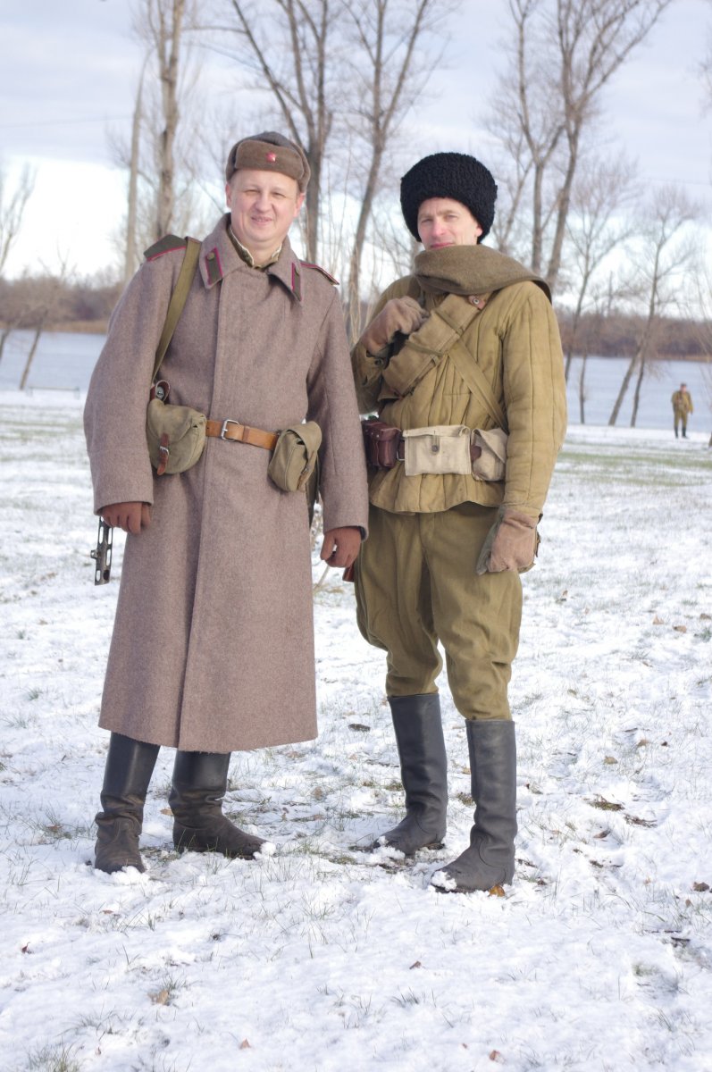 А так если на реконе, на улице снег по яши и -20 -30 то зимний комплект (куртка, брюки) будет смотреться гараздо луче нежели раздельное ношение. Солдатское польто (шинель) гараздо красивей и годиться с снегом или без снега...
