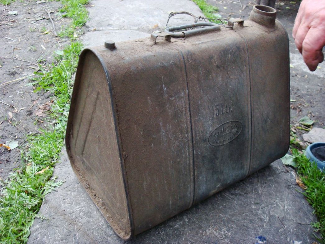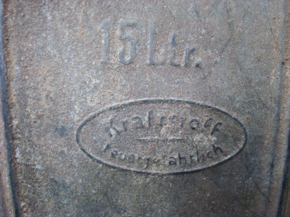 Надпись - горючее, огнеопасно 15 литров. Наверняка Германцы по ВОВ. Где-то такую обсуждали, вроде как от машинного масла. Цена....сколько попросишь. Тут обычные канистры по 150грн не больше ценят..... а крышка есть ?