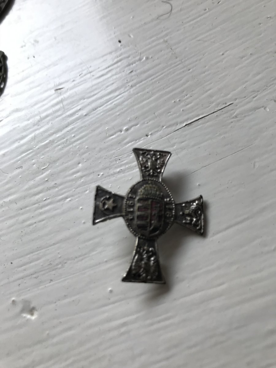 Приветствую. Если верить этому источнику- это Австро-Венгрия. Патриотический значок 1914 - 1917. Там же ссылка на обсуждение. С уважением