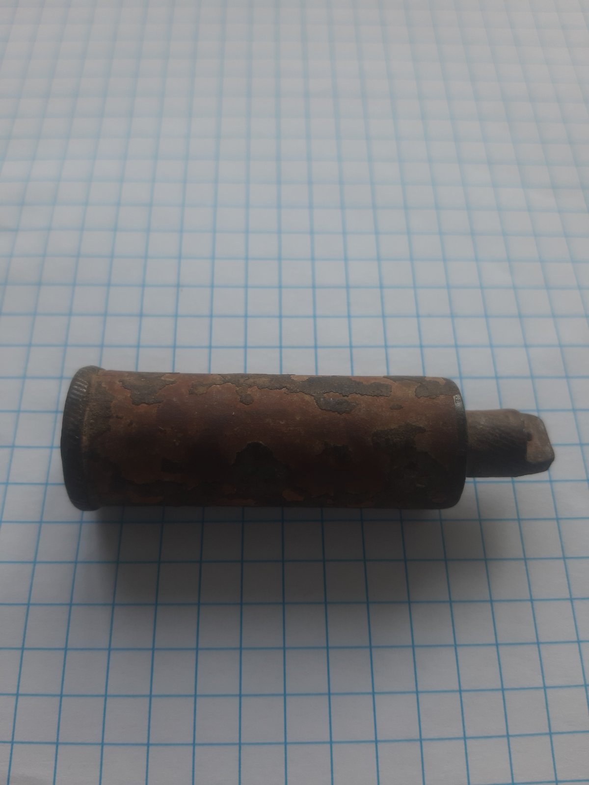 З товстої сторони вроді закрутка ,,може бути жинон,але такі не зустрічались.На запальничку не похоже,не має отвора з верху .знахідка камрада ,попрошу ще фото.