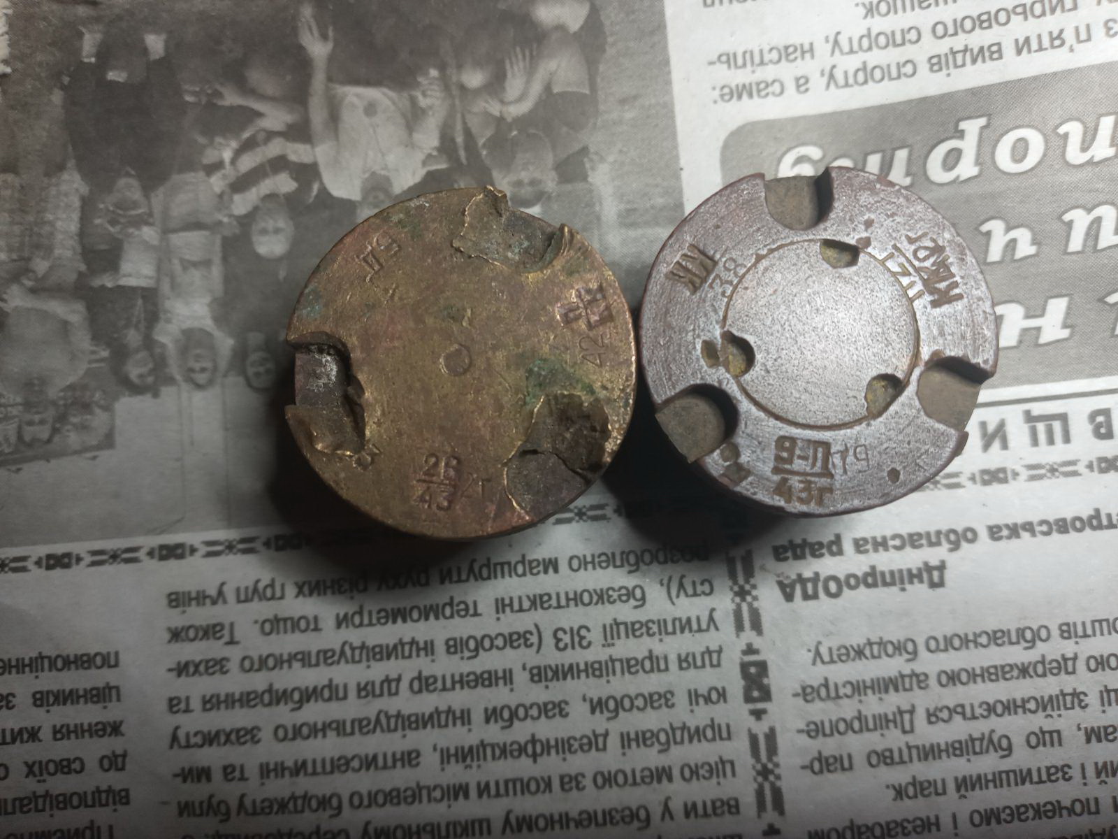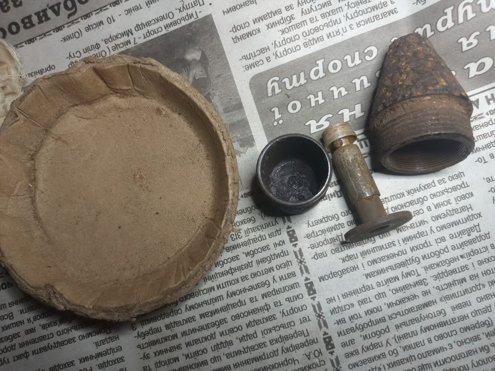 Добрый вечер, капсуля с 76 мм гильзы подскажите я правильно думаю? "Капсуля с гильзы 76 мм 1, 42 года перезаряжался в 43 году... 2, 38 года перезаряжался в 42 и 43 году". Да и капсуль 2 какой то двойной, почему? взрыватель с 45 мм снаряда, как он называется?