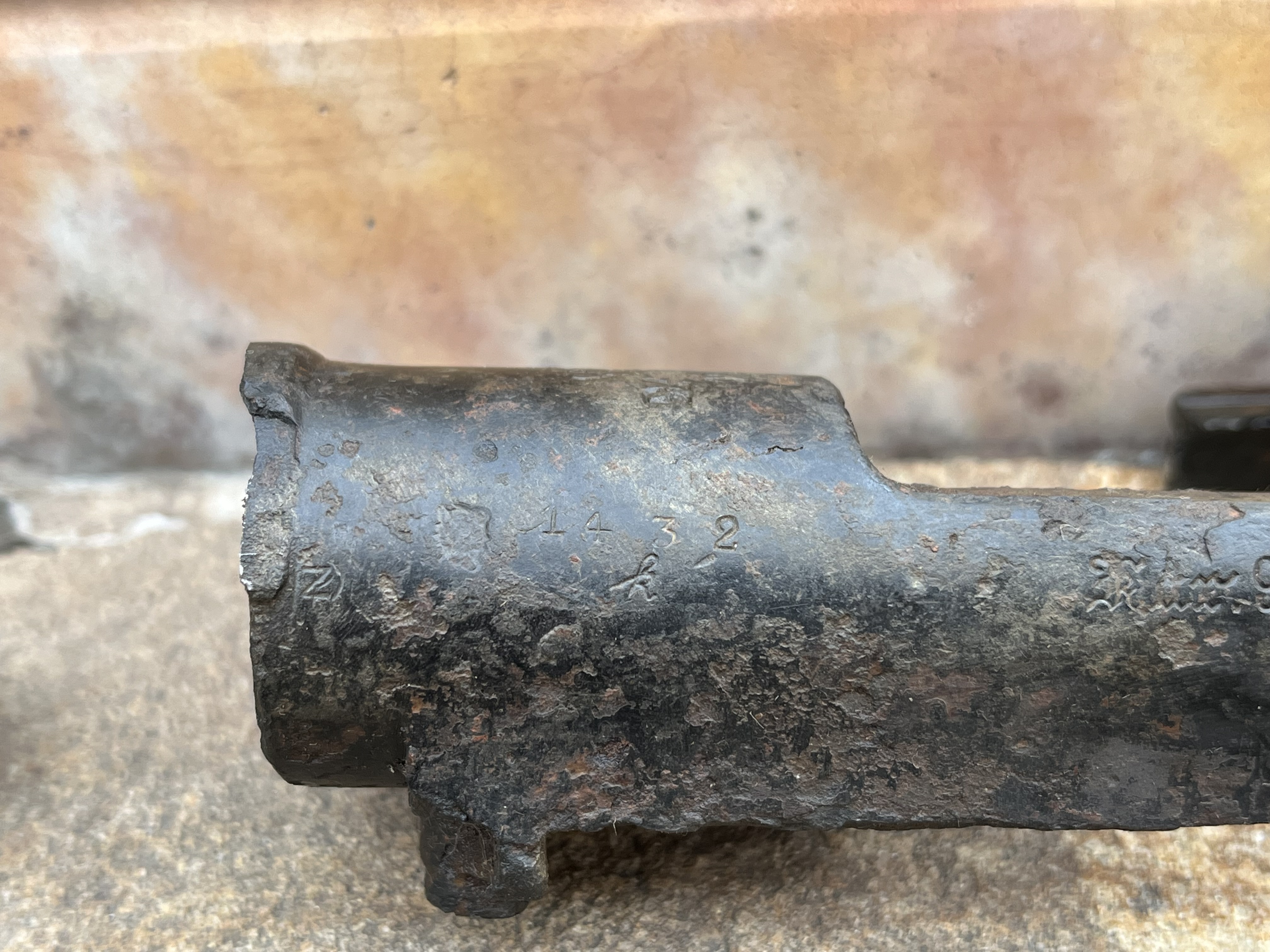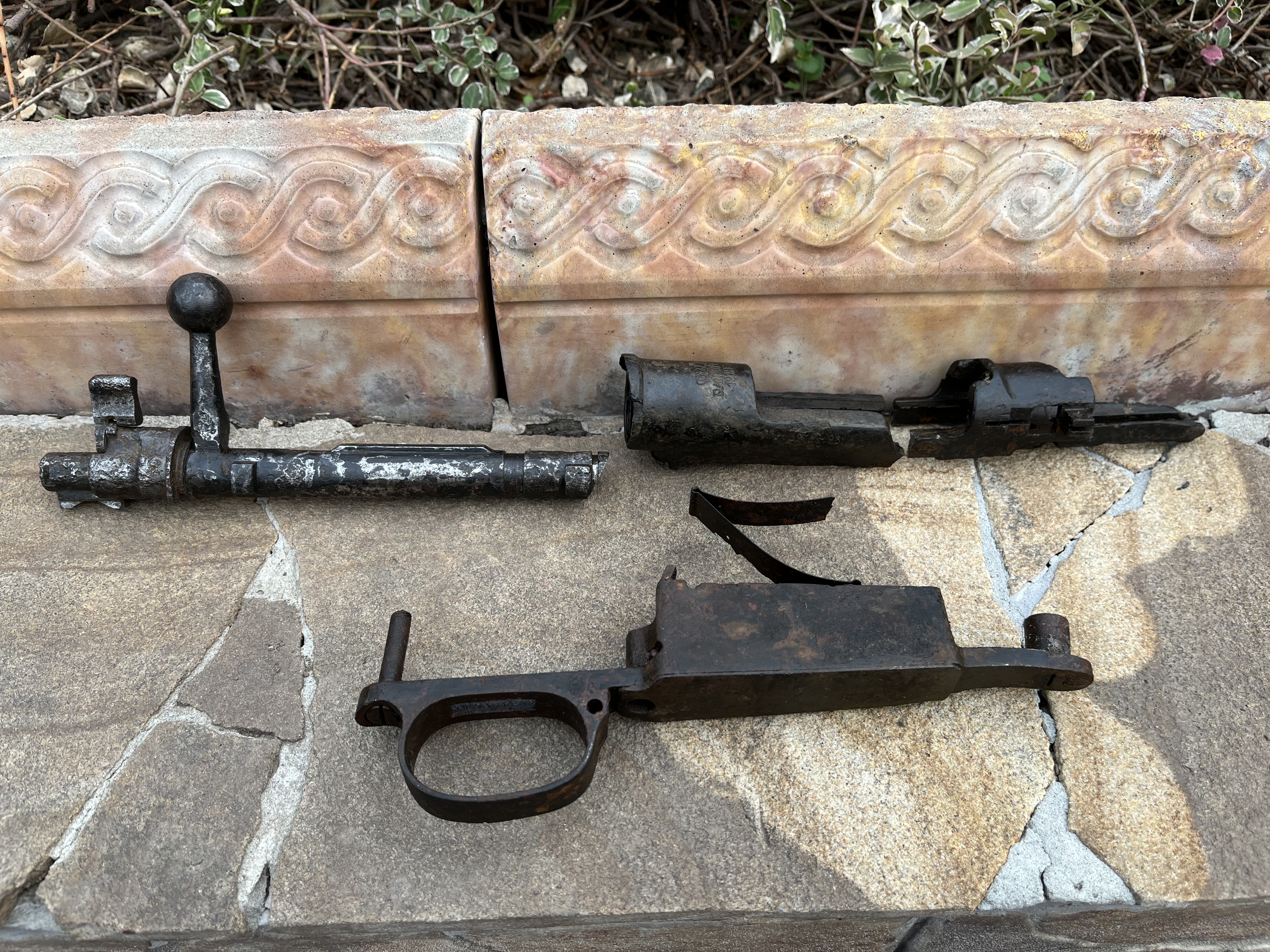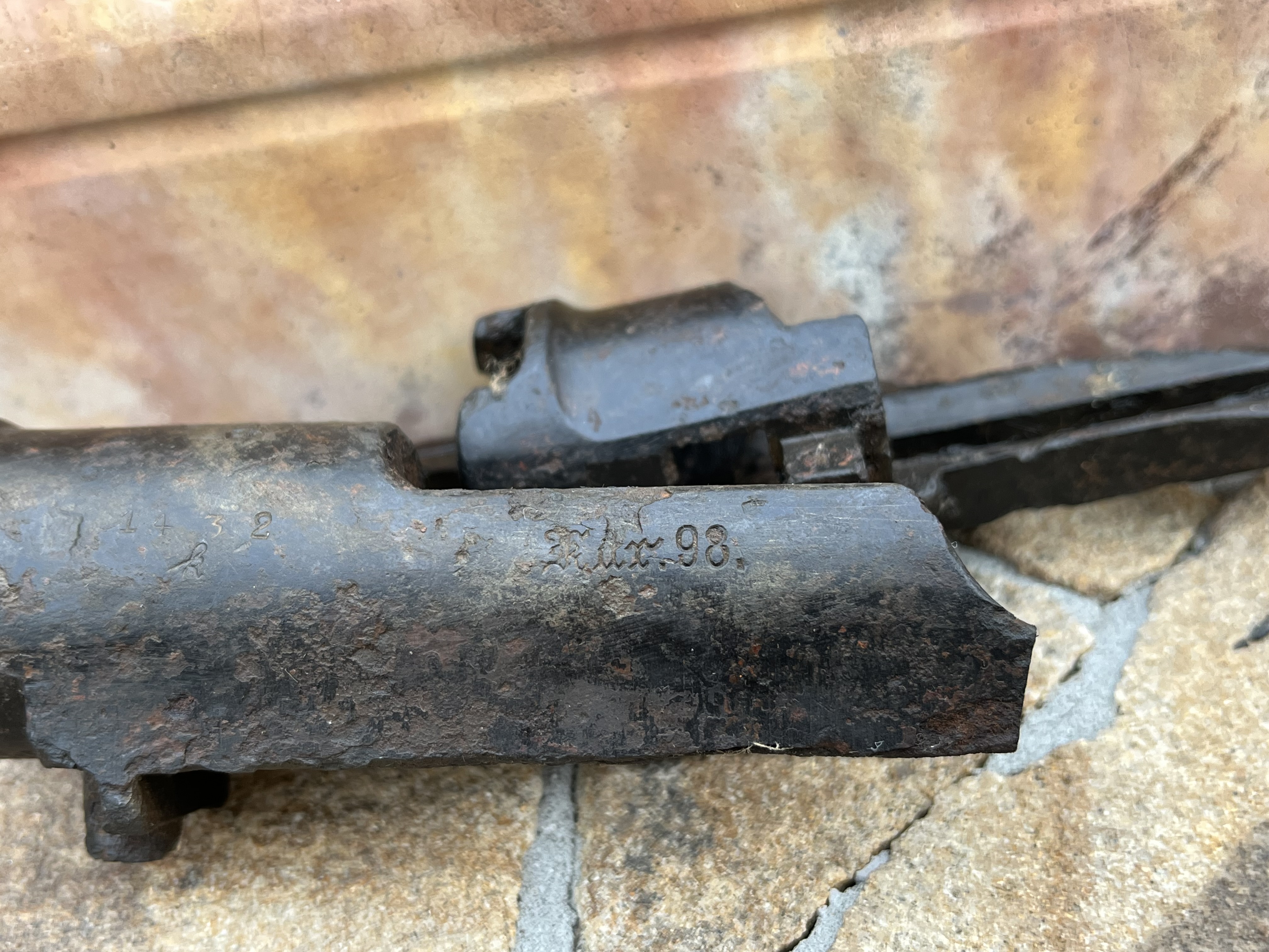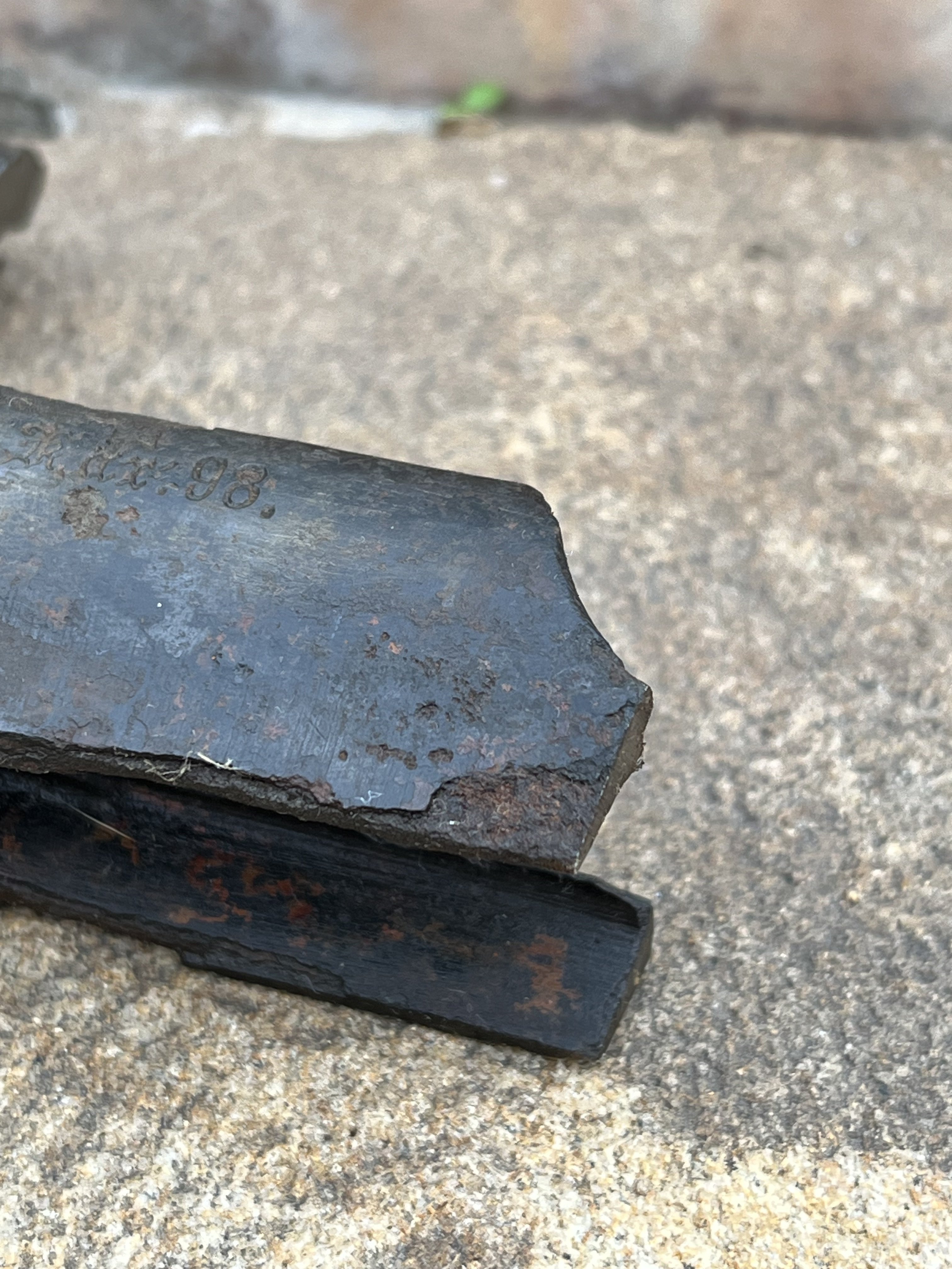 Добрый день, уважаемые камрады, попала ко мне в руки вот такой предмет. Огромная благодарность человеку который его мне презентовал. Предмет был куплен на зарубежном аукционе и на фотографиях выглядел весьма бодро и привлекательно. Разрезанная рама - не составляет для меня проблемы. Два ровных пропила в очень легких для этого местах - проблема которая решается за один вечер. Очень подкупали красивые клейма и общее состояние предмета. Всё остальное в лоте - сборная солянка и никакого отношения к 98az не имеет. Но пока предмет ехал до Украины он постепенно начал превращаться в тыкву. Предположу что он изначально был найден в реке или в болоте и по мере высыхания металл начал отслаиваться. В основном видел такое на предметах , недавно поднятых из под воды. Отсюда и такой вывод. Прошу помощи у людей, которые сталкивались с подобными проблемами. Как сохранить то состояние что есть на данных момент и остановить процесс разрушения? Механическая чистка и чистка пескоструем не исключается, но как средство последнего шанса. Слышал про такой способ как метод очистки металла в углеродной среде. Суть такова : предмет в том виде как есть кладётся в металлический контейнер и засыпается полностью угольной крошкой. Затем полный контейнер наглухо заваривают и кладут в печь. Там уголь выгорая забирает из ржавчины(Fe2O3) молекулы кислорода и оставляет металл . Только не кидайтесь тапками объяснил как смог) Подскажите, может кто пробовал так? Или после данной процедуры вся рыхлость просто окалиной отпадёт? С ув!