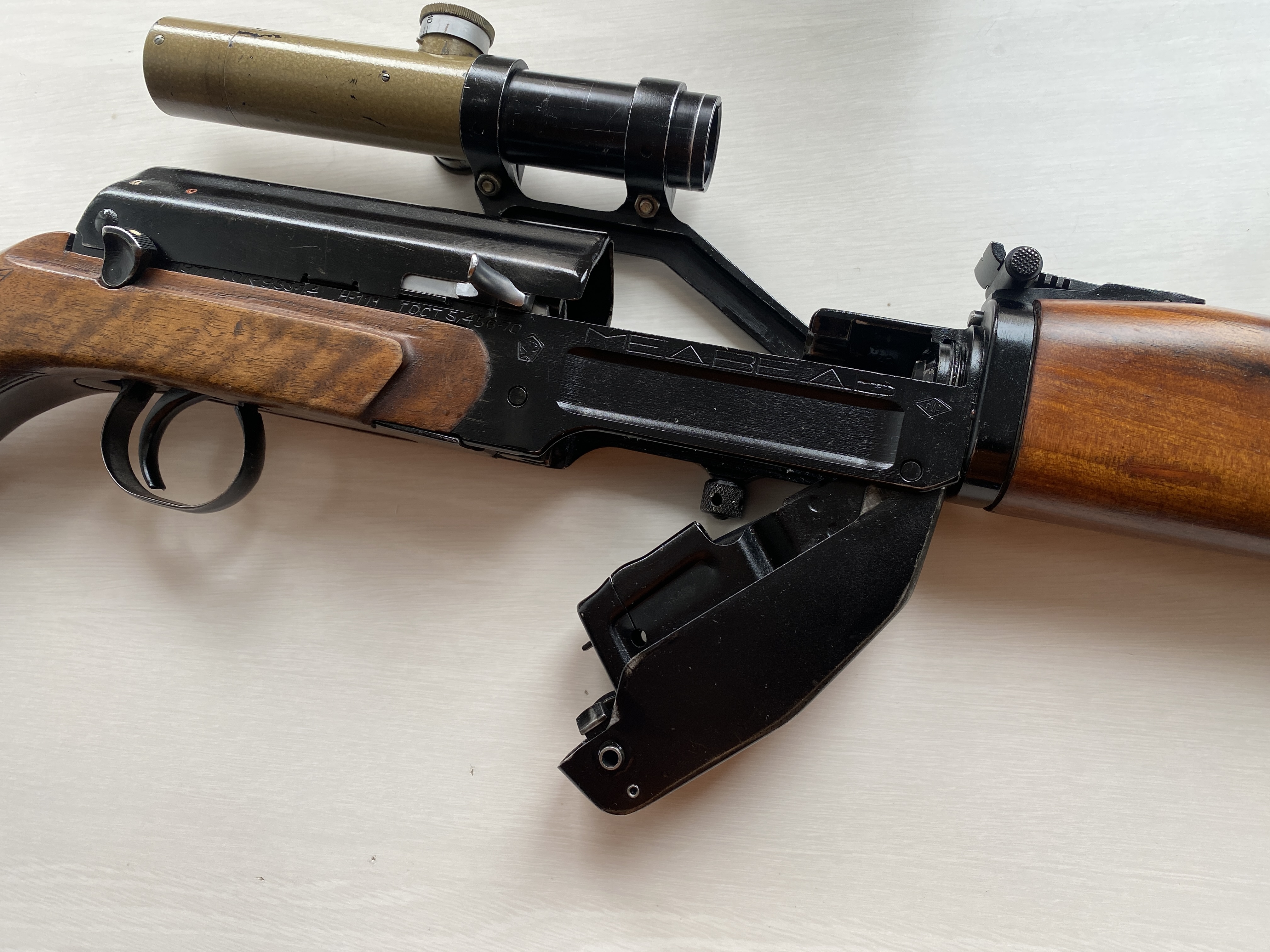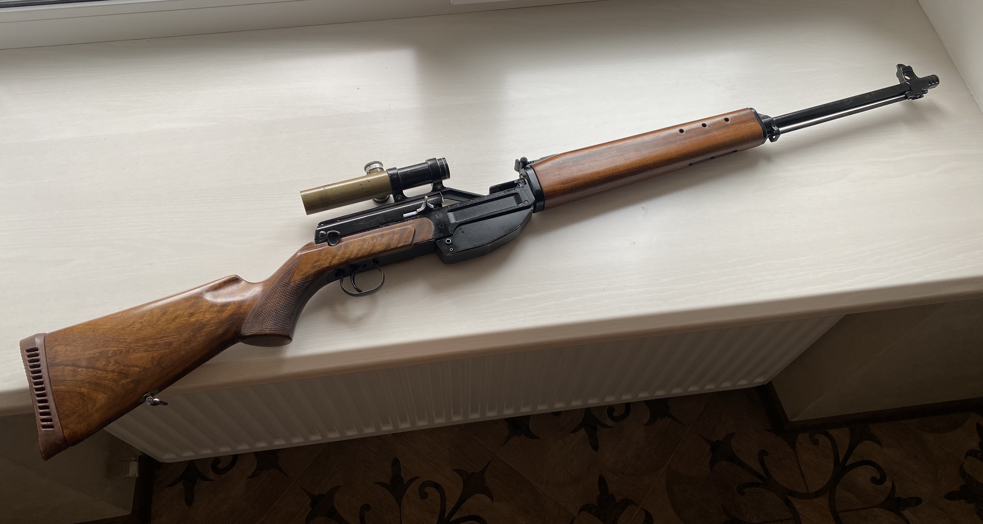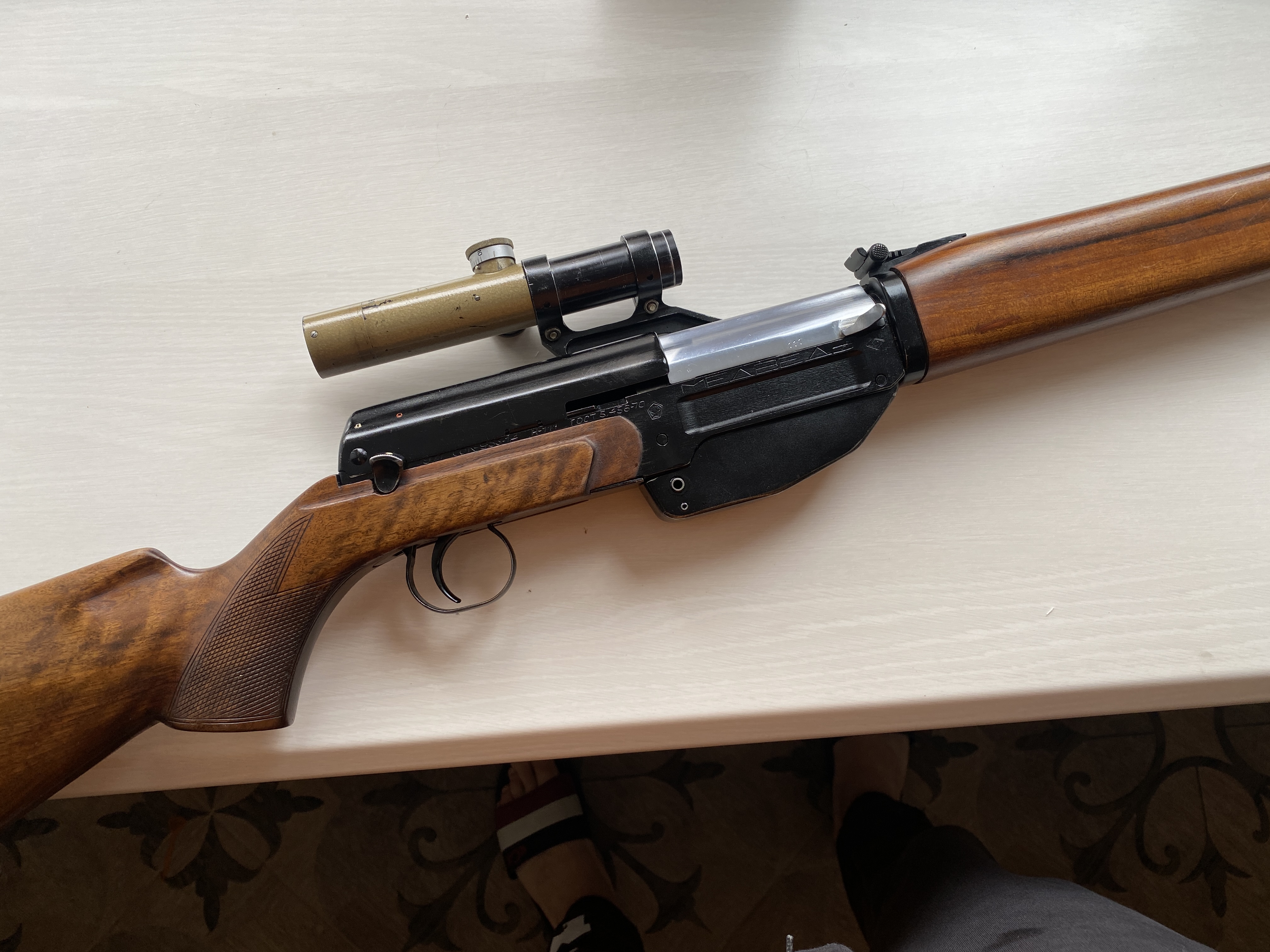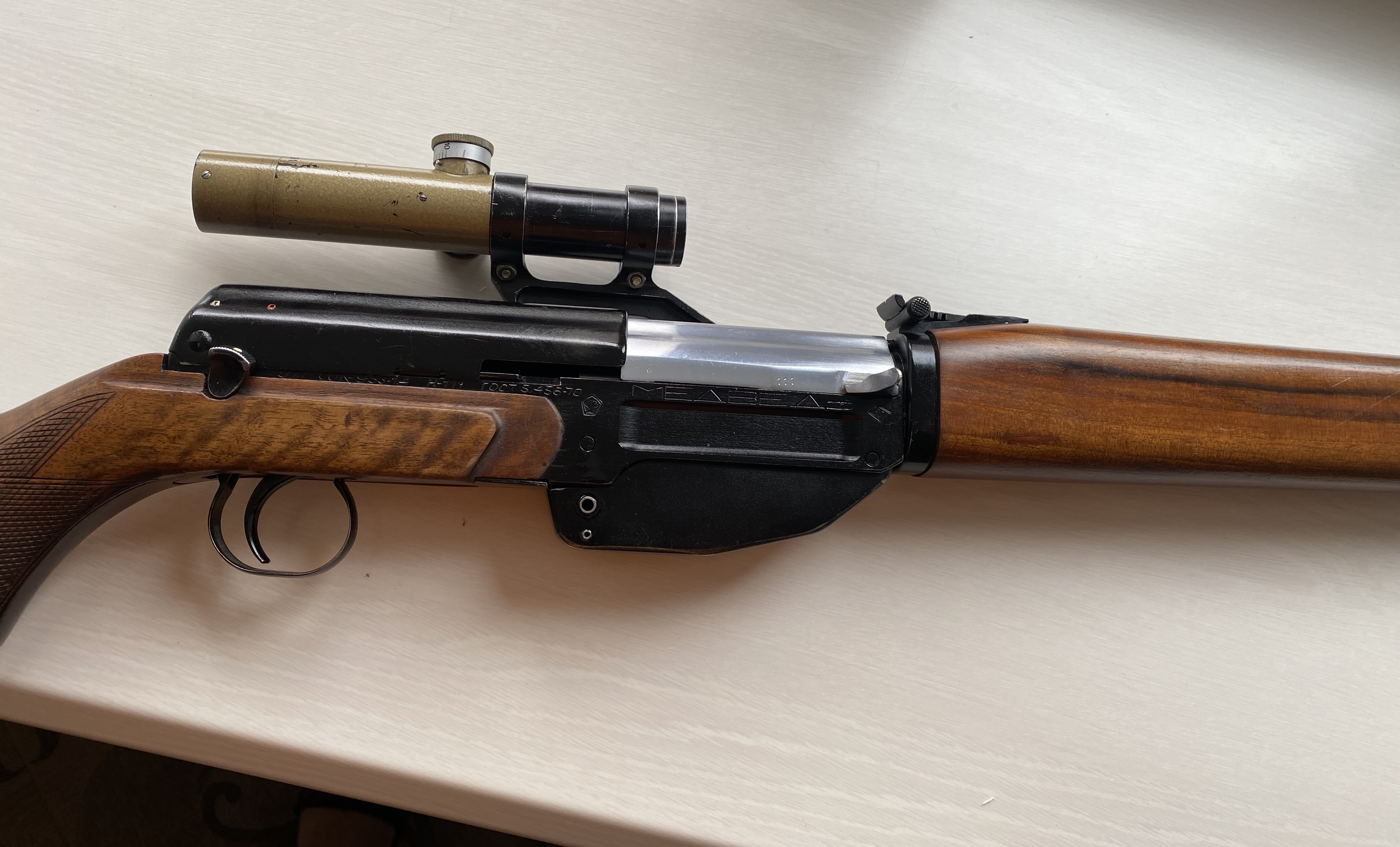 Добра Всім! Запропоную колекційний нарізний мисливський карабін, а саме « Медведь». Зброя випускалась з 1965 по 1975 рік, за цей час зроблено 150 таких карабінів. Їх дарували, послам інших держав, а також нагороджували висопосадових «товарищей». Такий був у Брежнєва. Яка була гос. ціна даної зброї нажаль не знаю і такої інформації немає. Її власнику, а саме раднику президента Кравчука, подарував посол Польці на початку 90х. Карабін в ідеальному стані, з дуже маленьким пробігом. На обліку в Київській області. До нього є 500 набоїв які будуть продаватись окремо від карабіну. Річ дуже рідка, номер карабіну 111. Ціна 2800 дол.