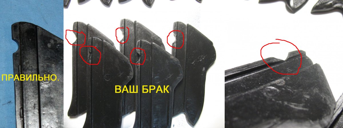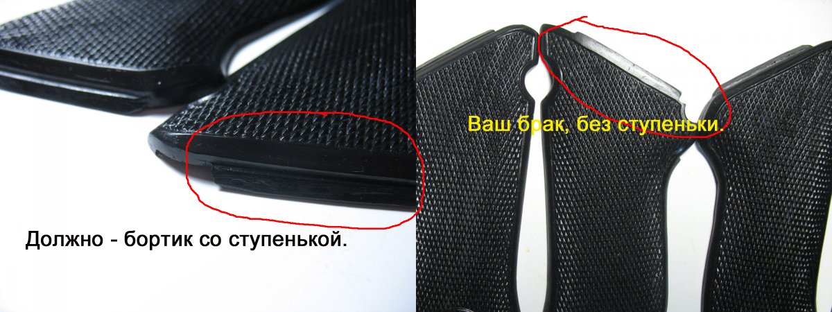 Ну вот вы сами и доказали что вы лгун мошенник и бракодел и все ваши "матрицы данных накладок с грубым браком" - одна без ступеньки и поэтому полностью не устанавливается и требуется её пилить, а вторая на внутренней стороне с треугольным выпелом которого быть не должно! На пистолете его очень сильно видно!