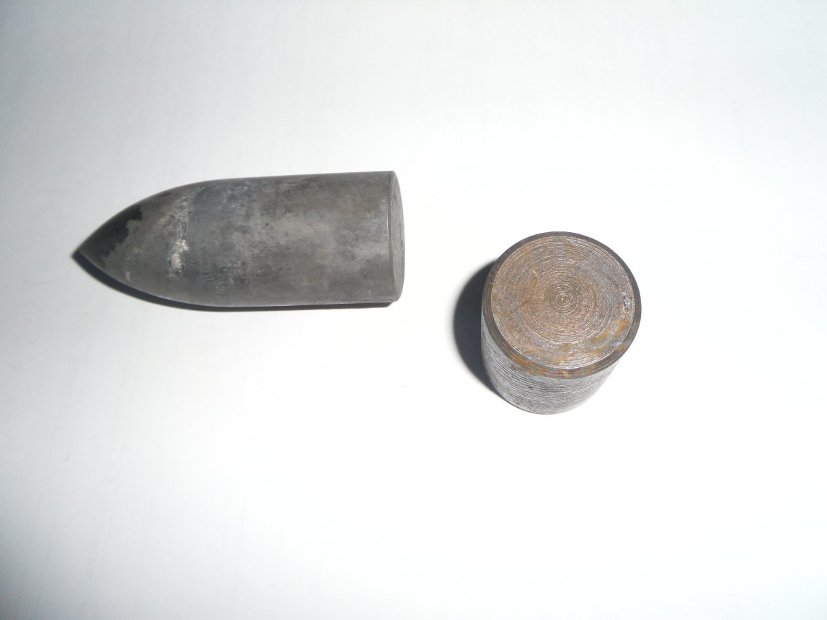 Оживлю тему. Вот такой составной сердечник с советского 76 мм БР-354П. Карбид вольфрама только в первом сердечнике. Заостренном. Второй - обычная сталь. Что удивило - так это вес. Вес острого сердечника аж 498 грамм. 5 раз перевесил. Сначала не поверил. Потому как до этого попадались стабильно 475-476 грамм. Вторая часть ( бочонок ) - 148 грамм. Общий вес двоих - 498+148= 646 грамм. Ну а из катушки сделал антуражную карандашницу. Кому интересно: https://reibert.info/lots/karandashnica-s-sovetskogo-podkalibernogo-br-350p.562988