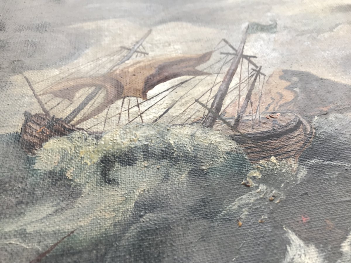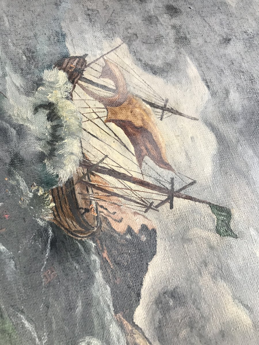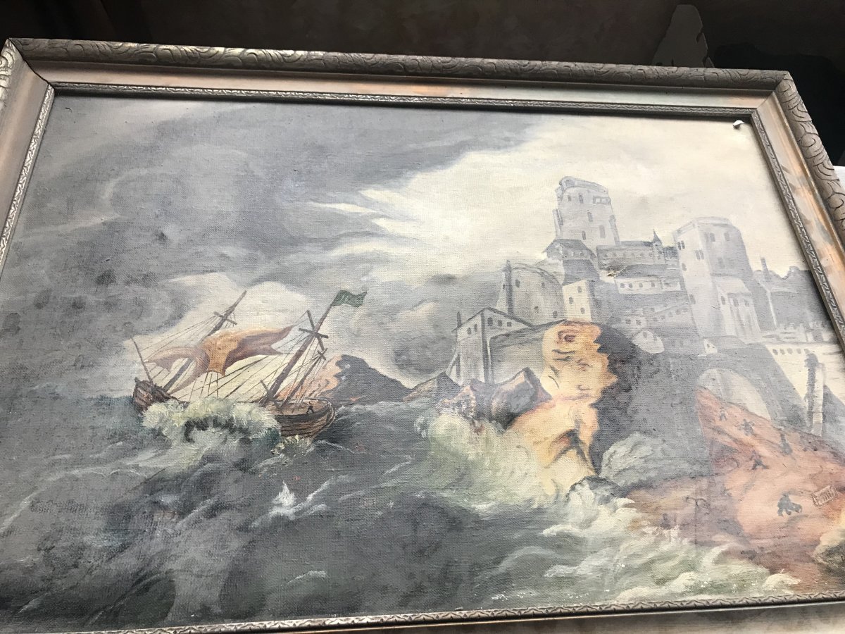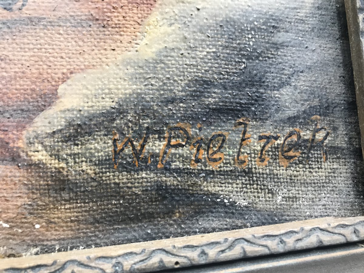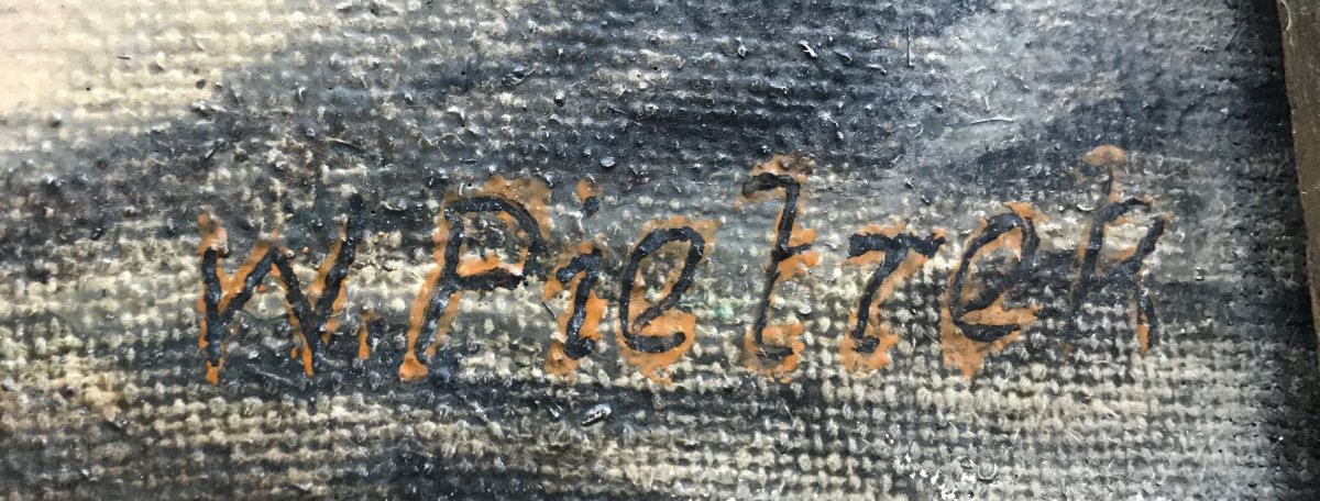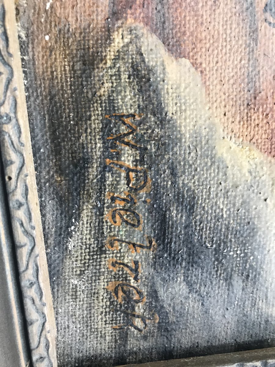 Добрый день, Подскажите что за картина? Картина со слов хозяйки пролежала лет 80.. вроде как была привезена с Германии. Масло Холст. Картина вся в пили в 3 слоя... Есть подпись автора отобразил на фото. Заранее всем спасибо. С Ув