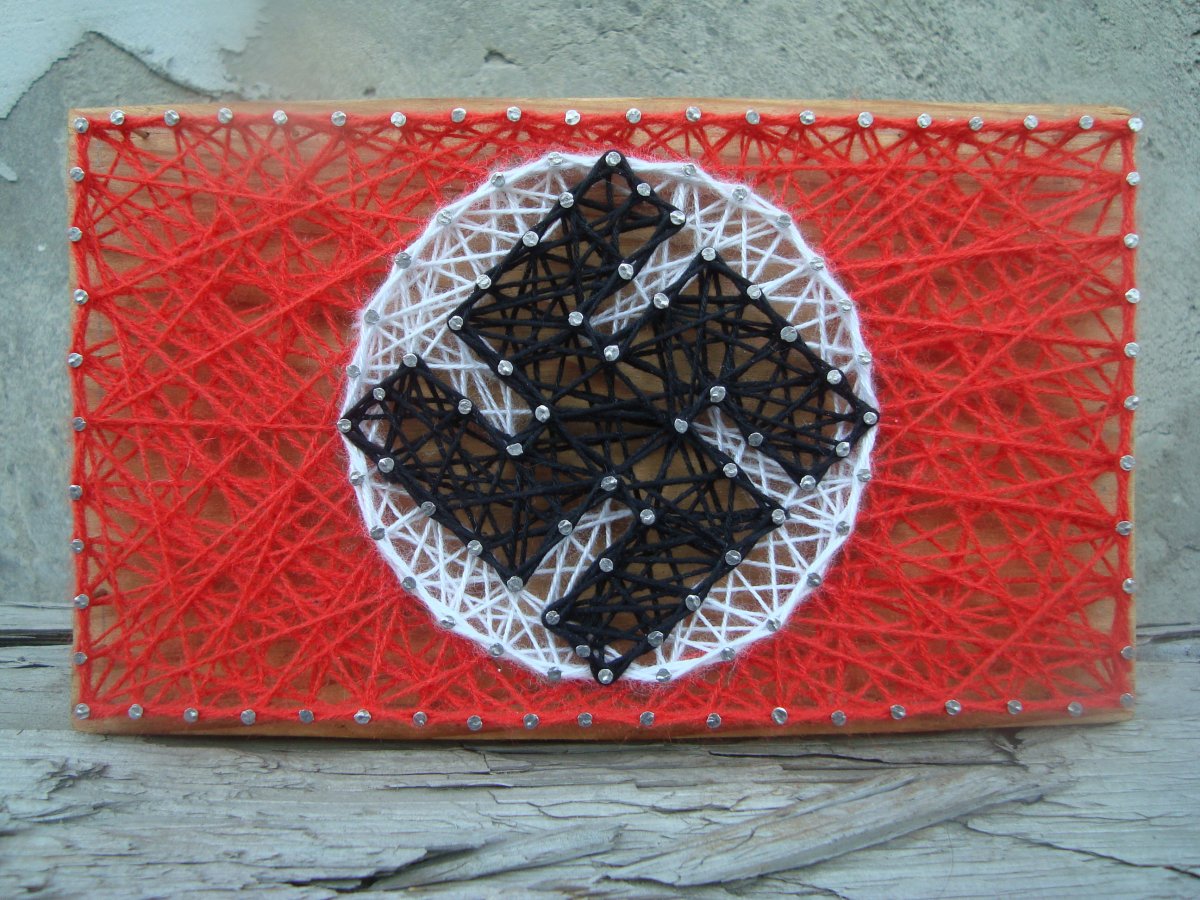 Дошка+нитки+цвяхи. Розмір 11.5 х 20 см. Можливе виконання під замовлення будь-якого малюнку та розміру. Ціна 200 грн.,оплата на картку Приват банку,пересил на покупцю Новою або Укрпоштою. Запитання та пропозиції в приват.