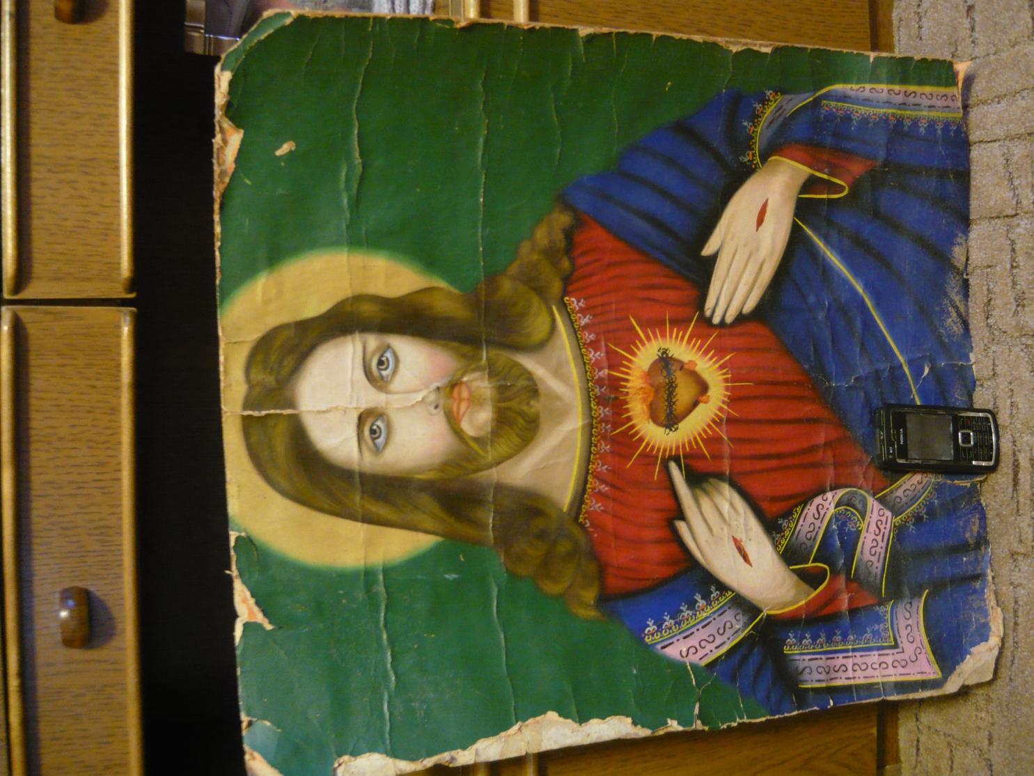 не хочу ничего плохого писать потому сильно не судите, картина испорчена, видимо ее плохо хранили, цену маленькую стоит, нашим покупателям в нынешнее время подавай в рамках золотых да в идеале, я конечно могу ошибаться. Ждем кто еще что скажет, самому интересно. з.ы ... может подарите в церквушку какую нить? Там от нее будет польза, люди будут приходить молиться, намаливать ее...