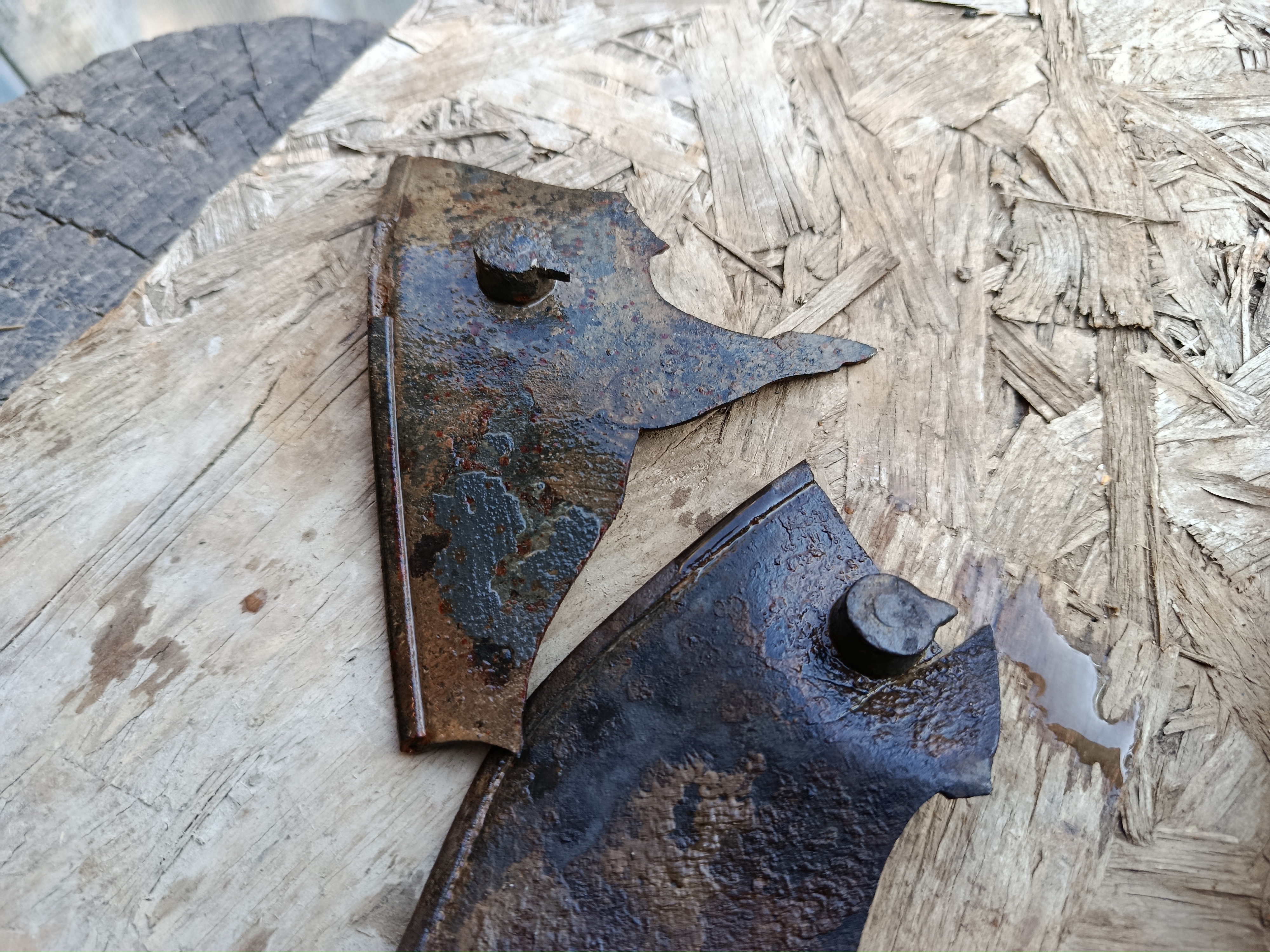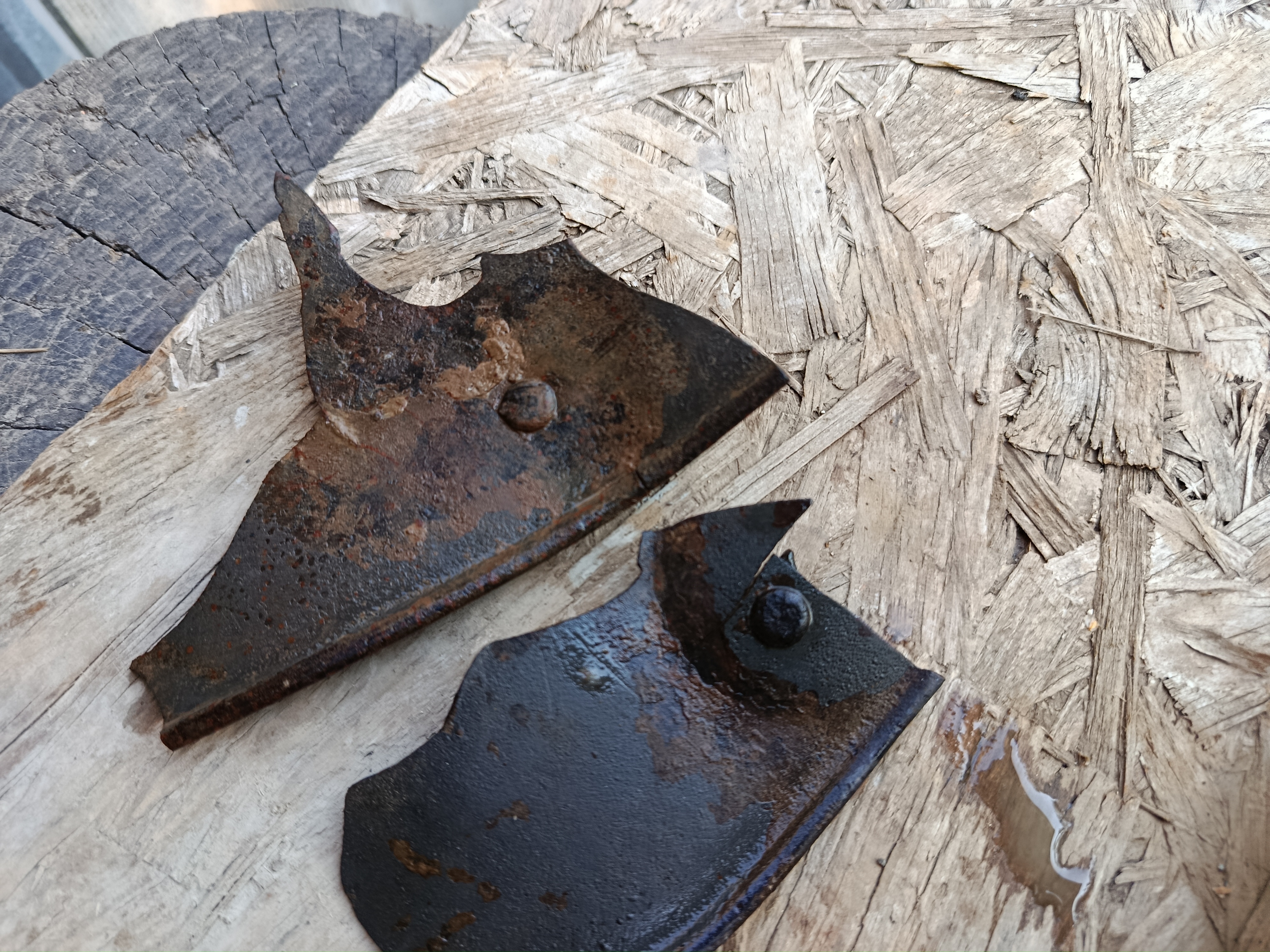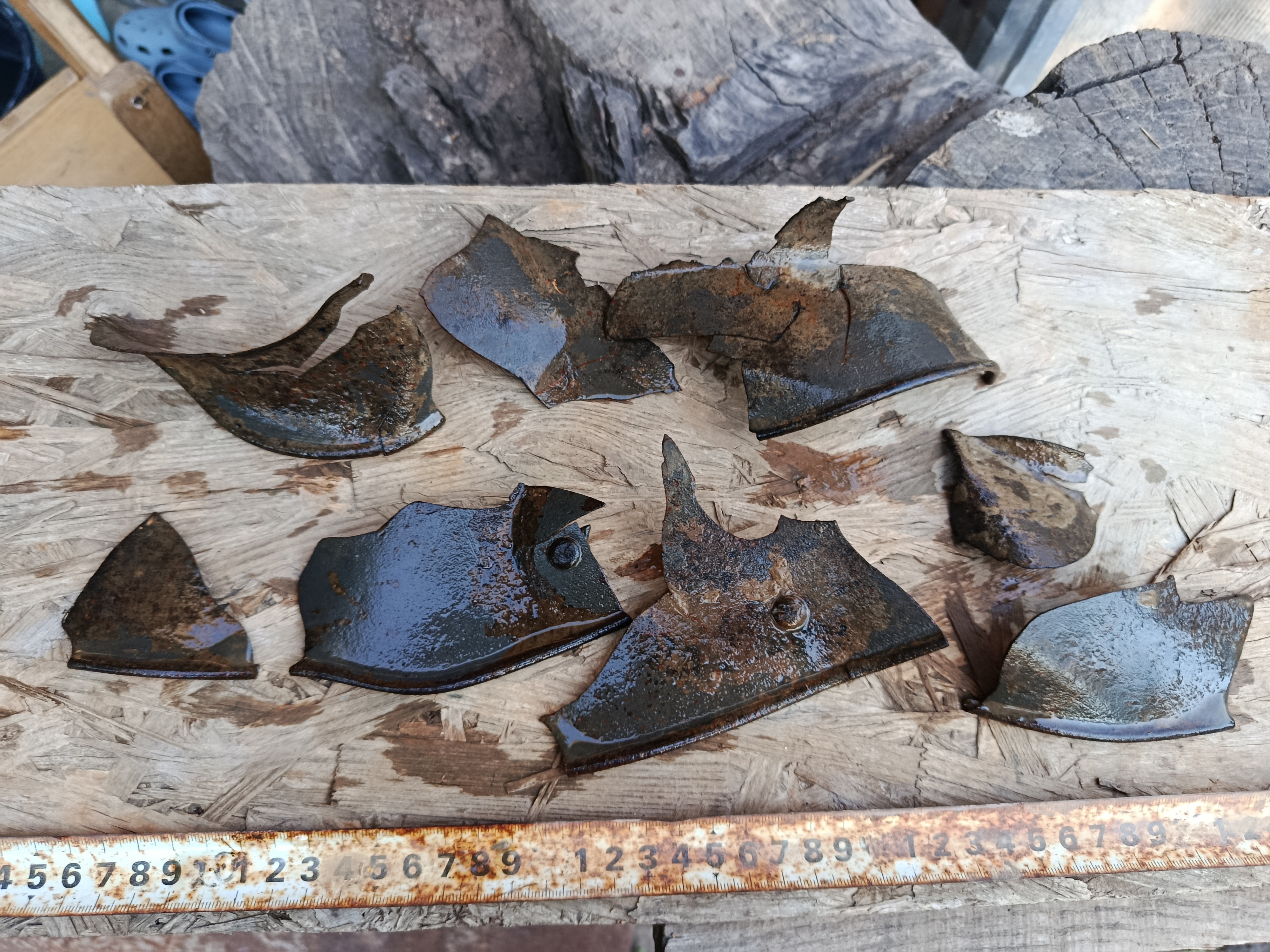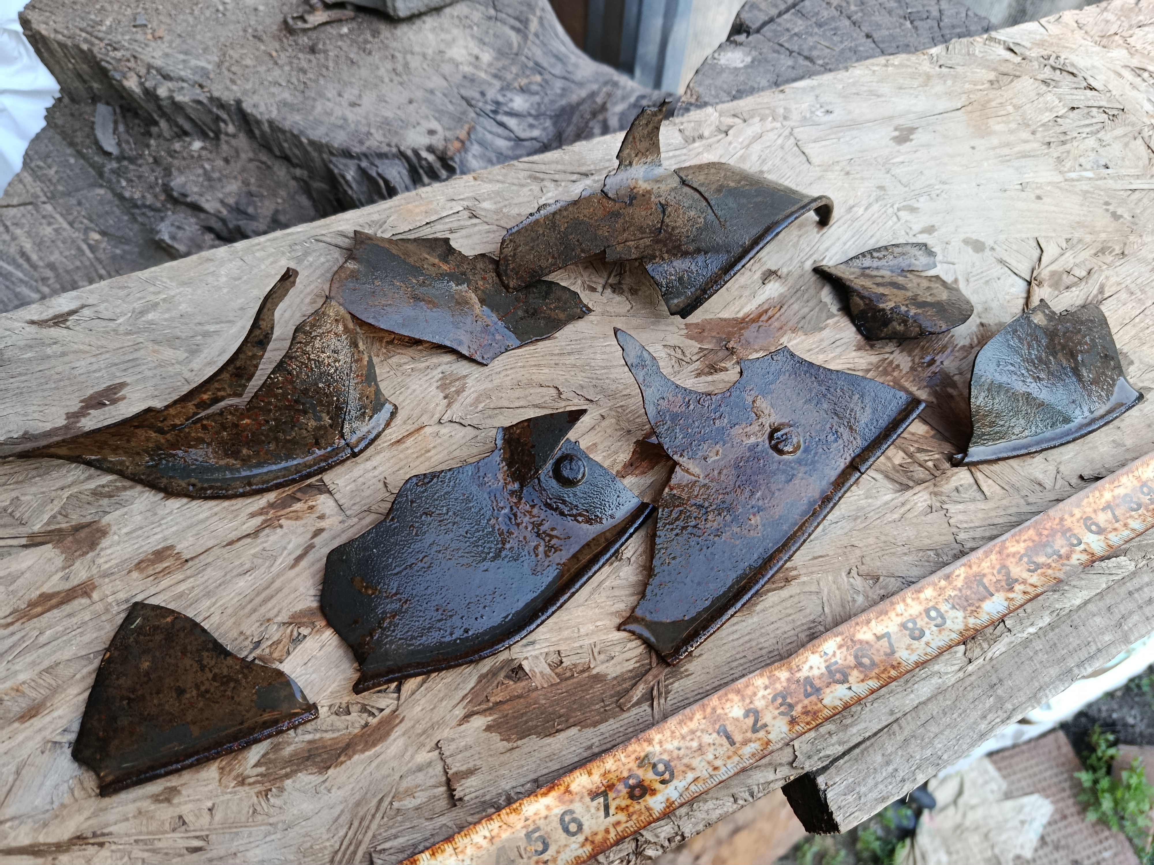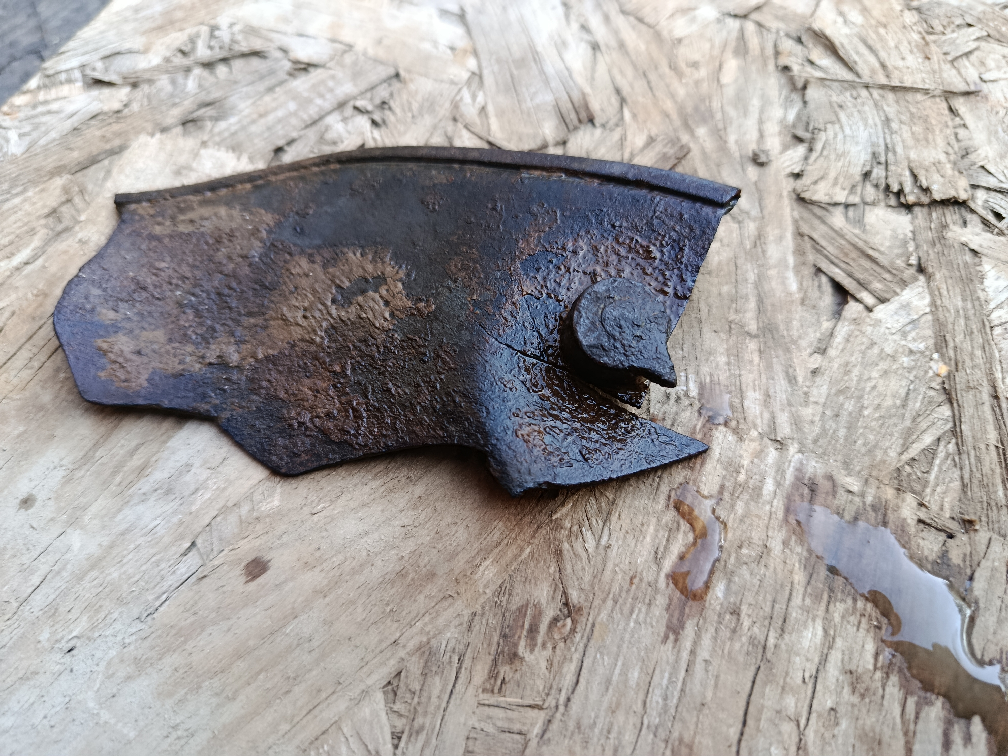Добрий вечір! Знайшлись такі шматки , схожі на куски нім. каски , даже й колір підходить.Але що то за шипи ?наче такого раніше не зустрічав на нім.касках.Може хто знає, що воно було!?