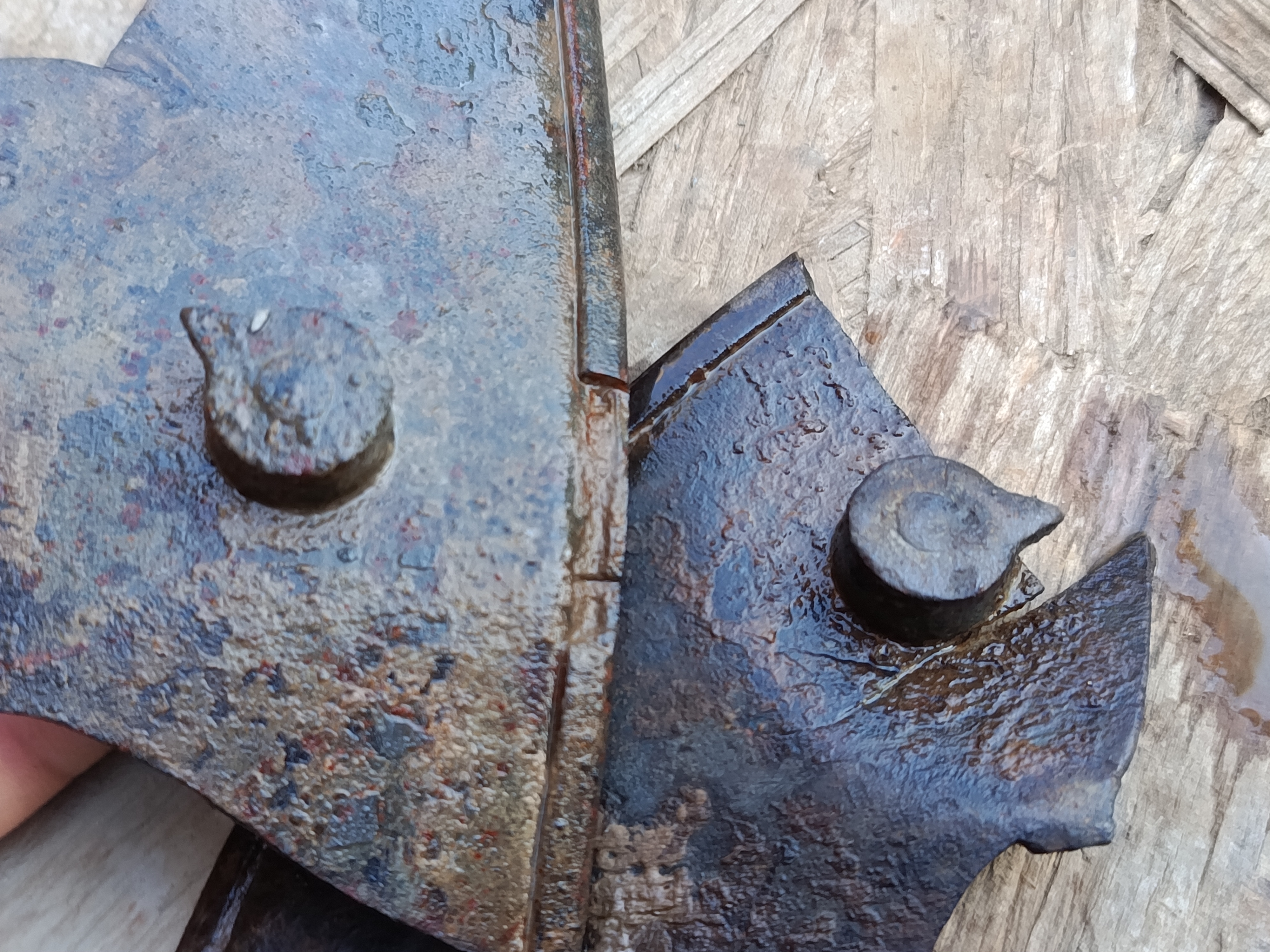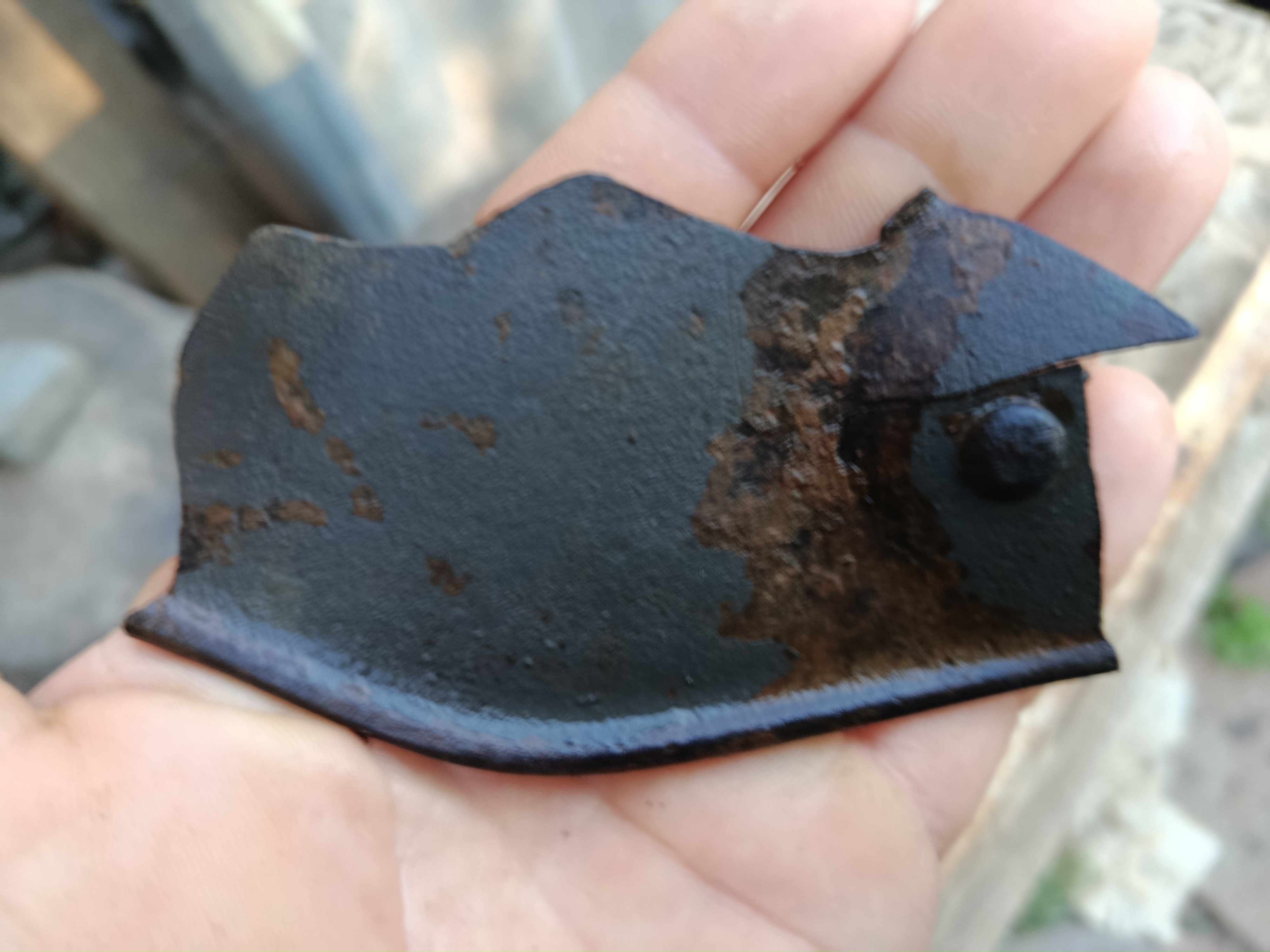 Здравствуйте, похоже на останки немецкого шлема периода Первой Мировой, М16, М17. "Шипы" - крепления подбородочного ремешка: