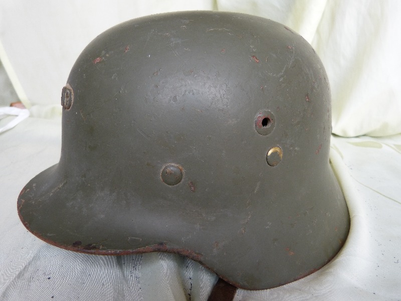 По идее эта каска одна из тех,что оставил легион "Кондор" после гражданской войны в Испании.Может я и не прав.
