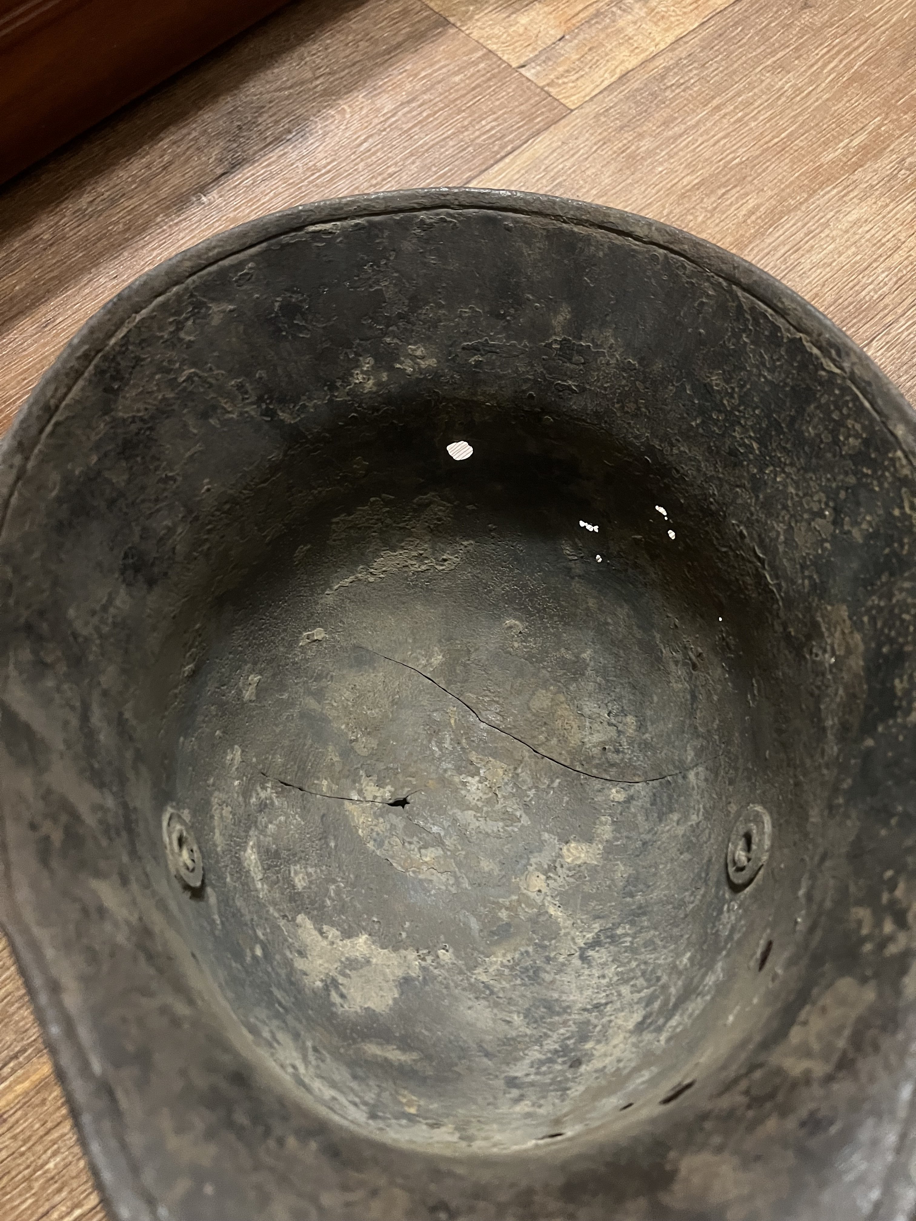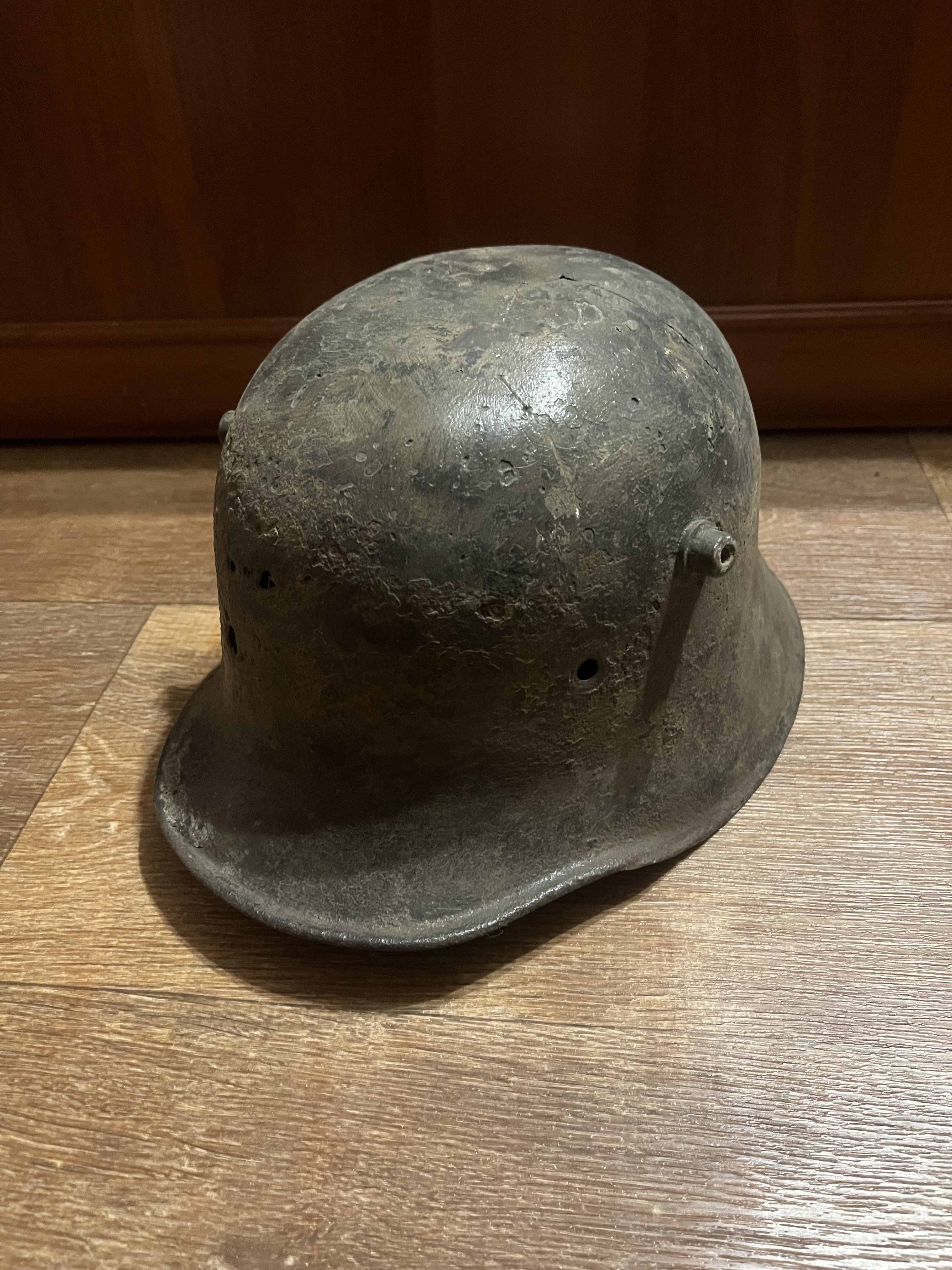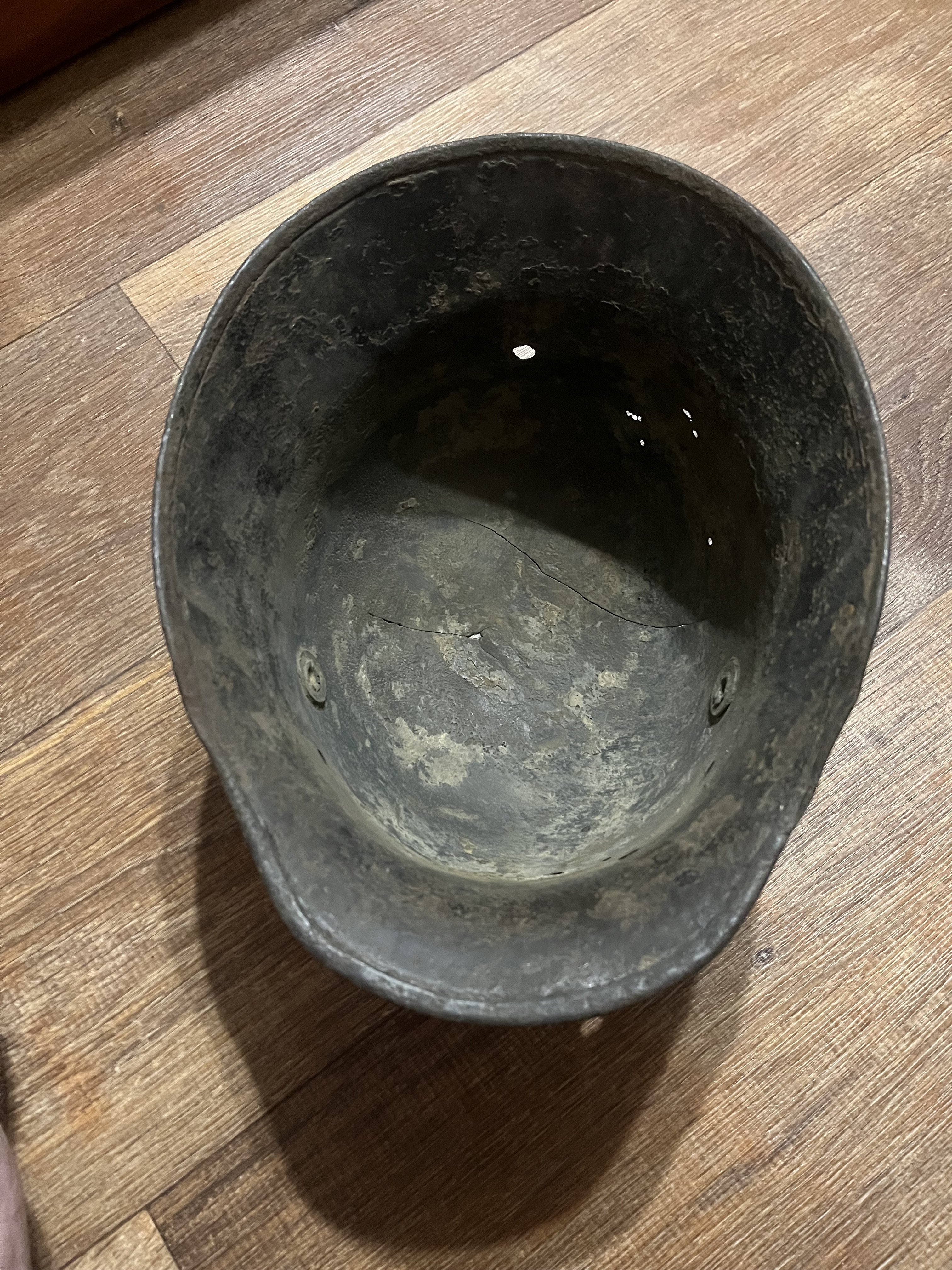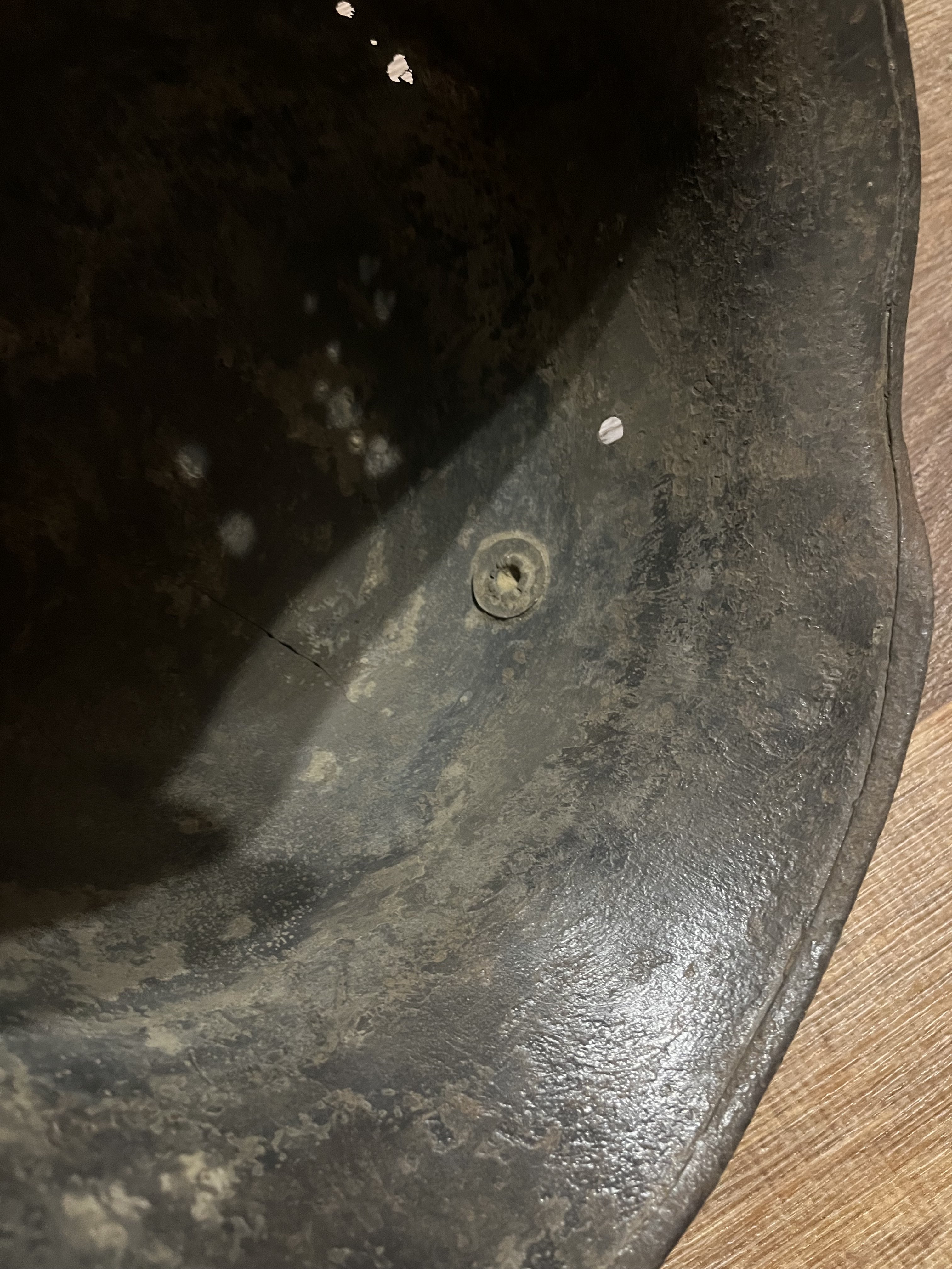 Для лучшей продажи можете добавить в описании, что шлем от производителя "Richard Lindenberg A.G., Remscheid-Hasten, клеймо - символ колокола плюс L". Это можно определить даже не видя клейма, которое уже не найти из-за коррозии, т.к. он единственный производитель, который закруглял рога по окантовке как на продаваемой каске.