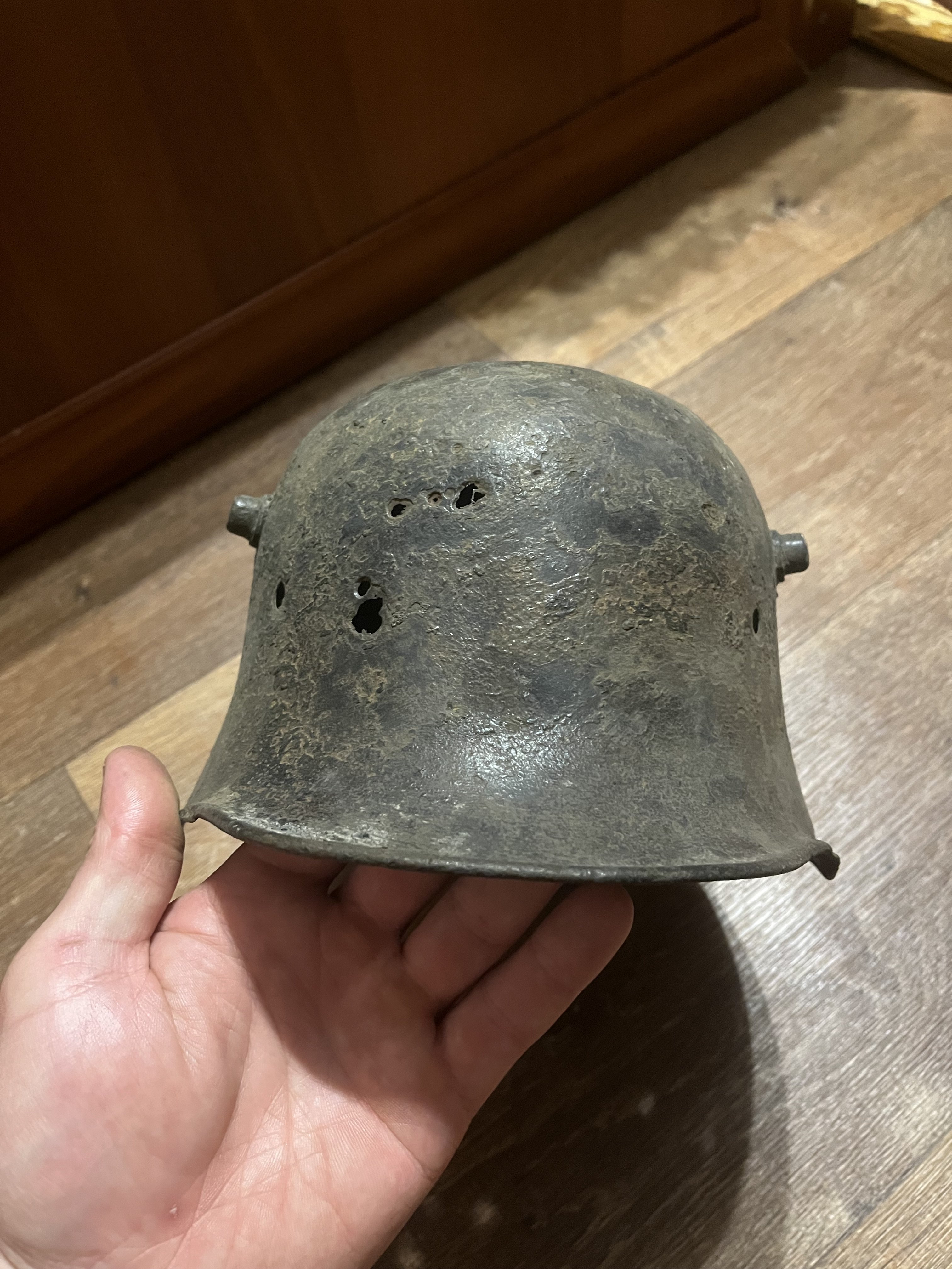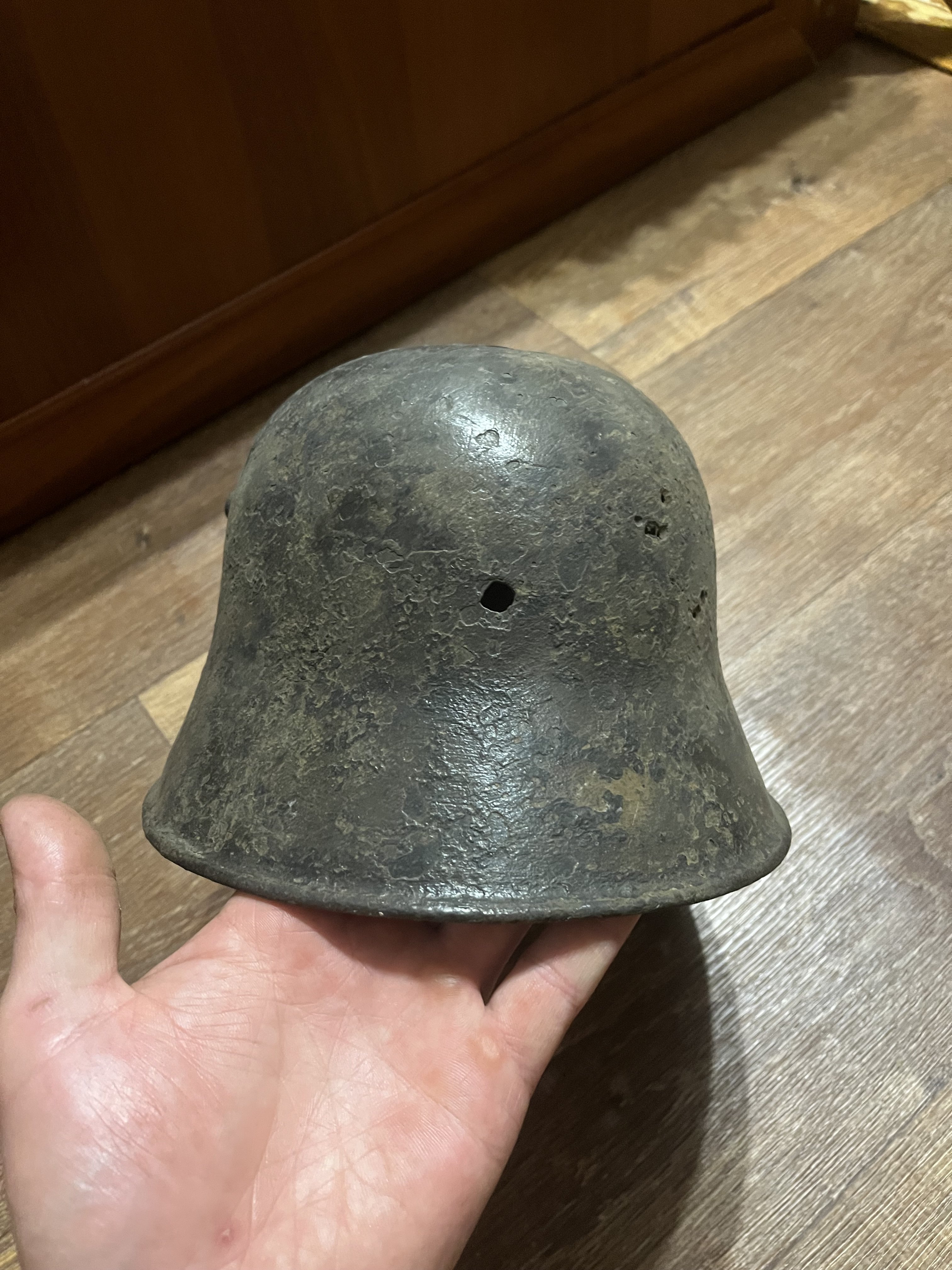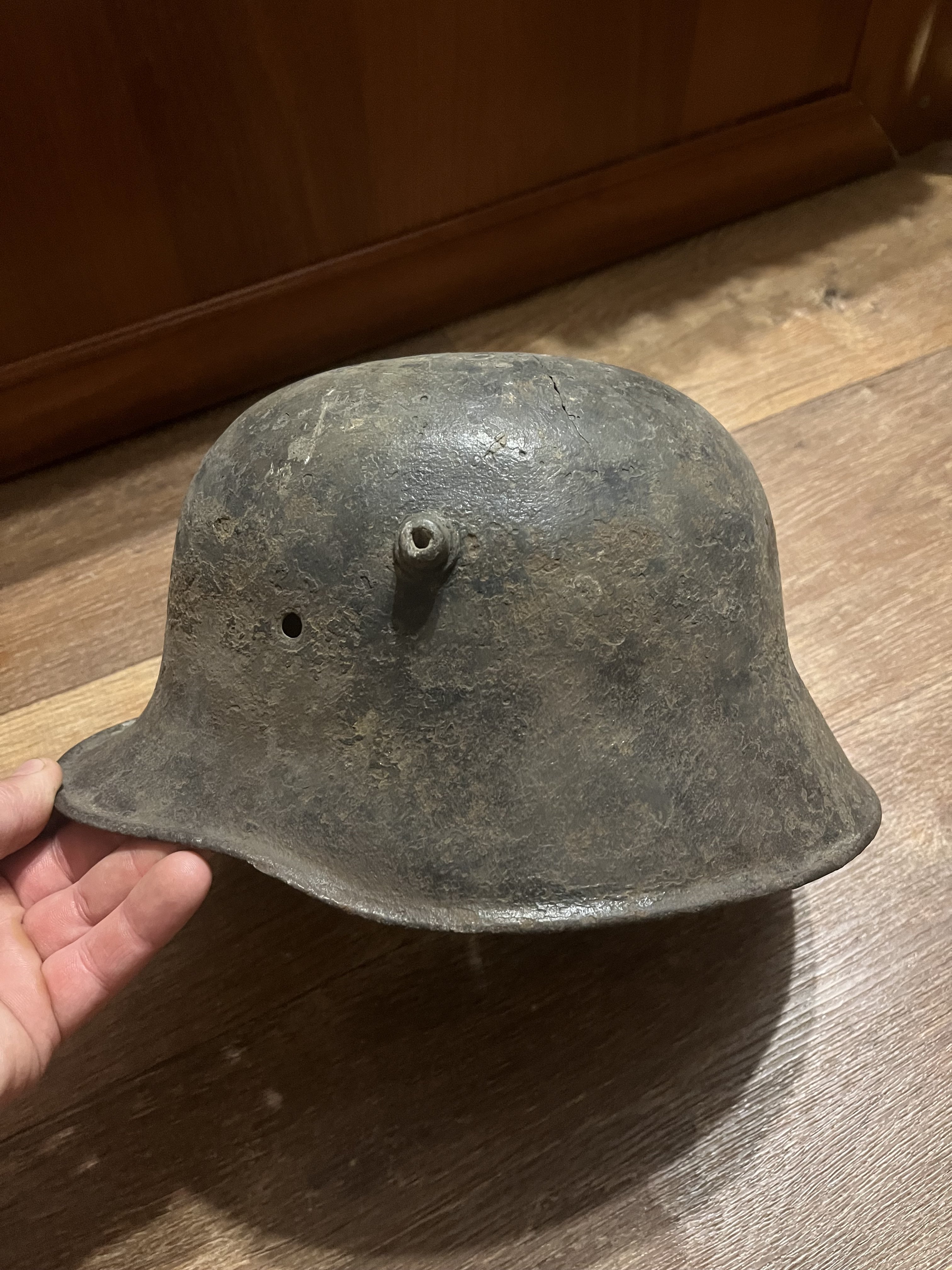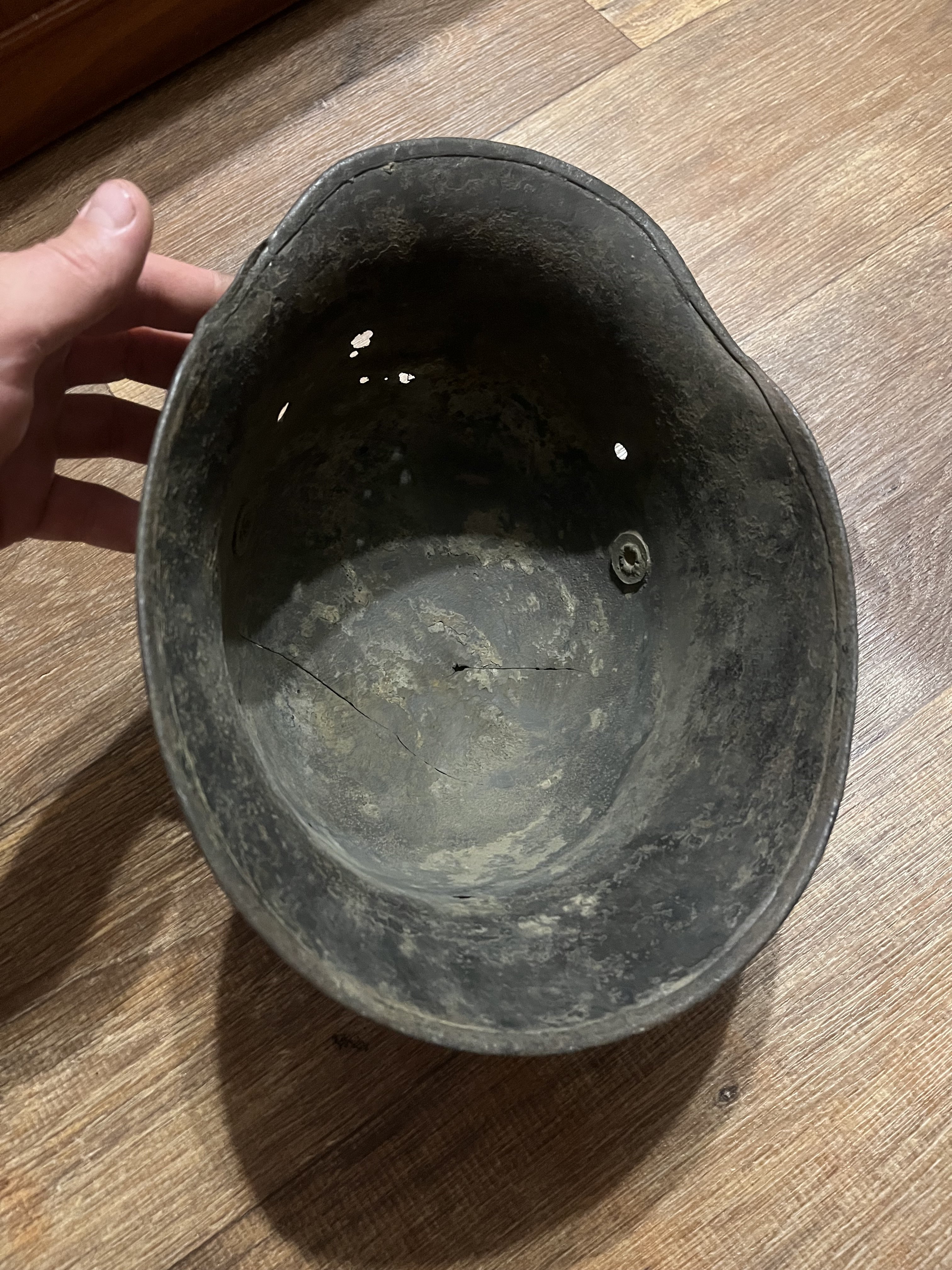 Для лучшей продажи можете добавить в описании, что шлем от производителя "Richard Lindenberg A.G., Remscheid-Hasten, клеймо - символ колокола плюс L". Это можно определить даже не видя клейма, которое уже не найти из-за коррозии, т.к. он единственный производитель, который закруглял рога по окантовке как на продаваемой каске.
