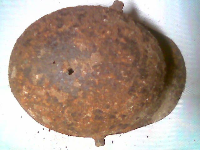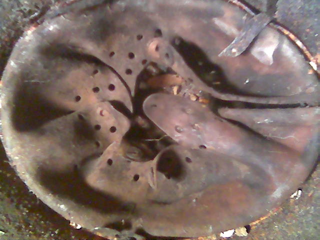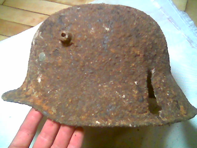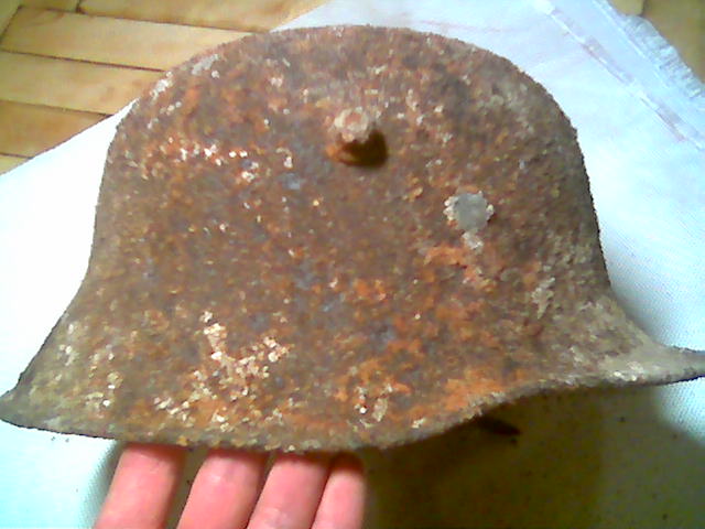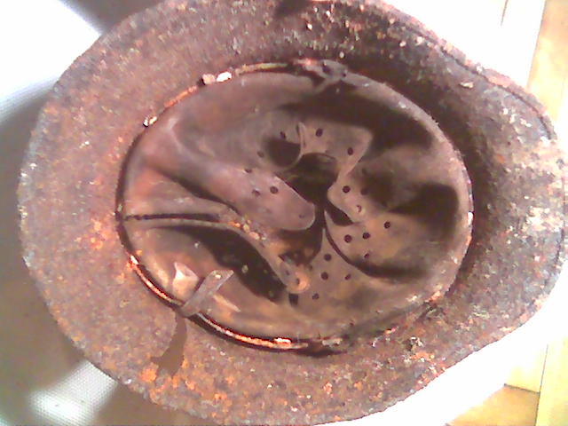 С левой стороны отверстие от осколка, да и купол немного дрявый. Правда каску еще не мыл, возможно полезет еще пару дыр.