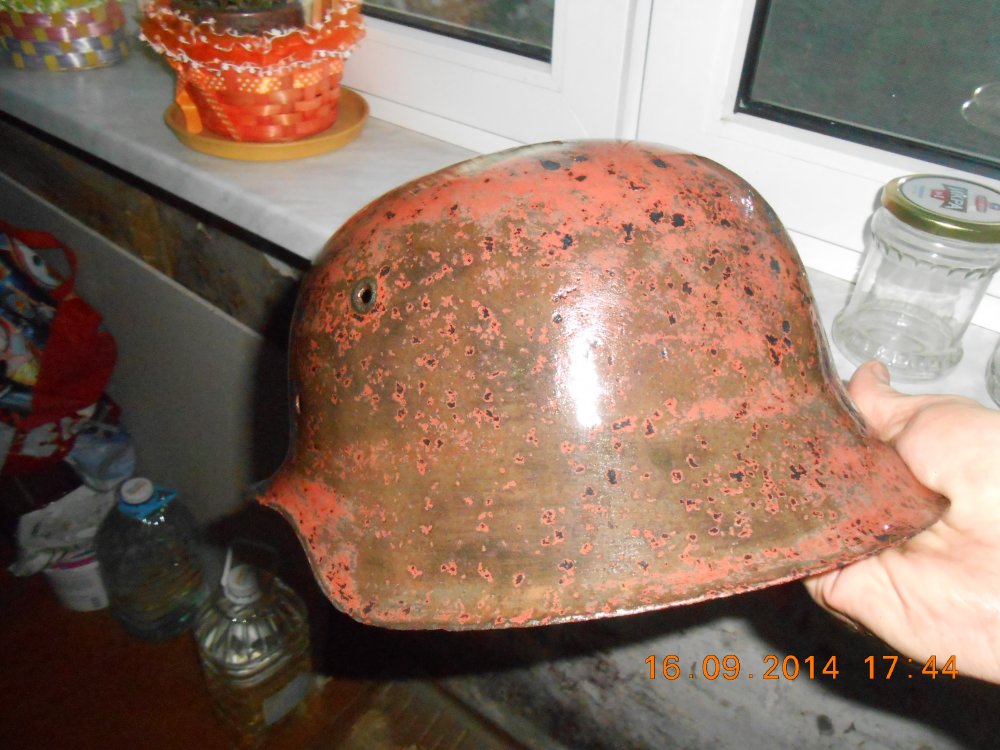 Камрады,приобрел каску м-42,на ней был деревенская краска(каска видно использовалась как корыто,для воды для курей)выбил заклепки,и начал стирать наждачкой краску-черную а под ней красная,и тут появилась ее родная,обчесал нулевкой вокруг,но в мелких раковинах осталась "деревенская"!Вопрос как снять "деревенскую"в раковинах что б не портила внешний вид,родной краски очень много!!Каска вся в ней-в родной краске! Извините за фото,фотопарат не мой,починю свой,выложу лучше,скажу одно в живую намного лучше!