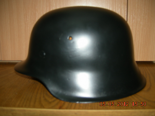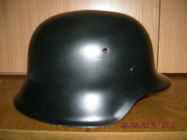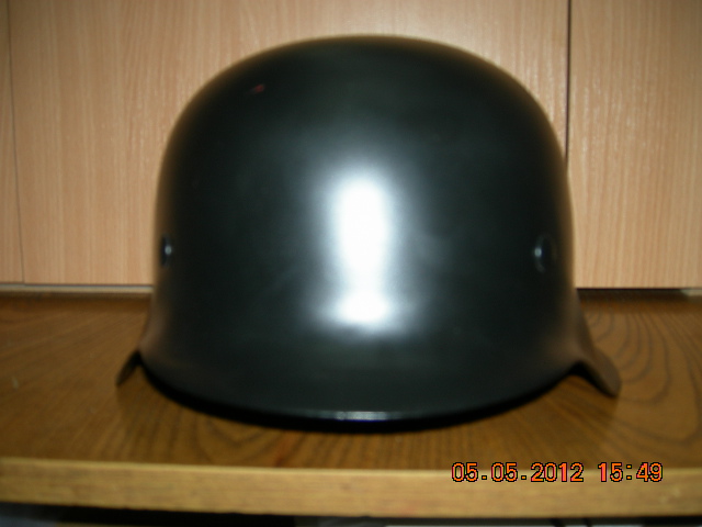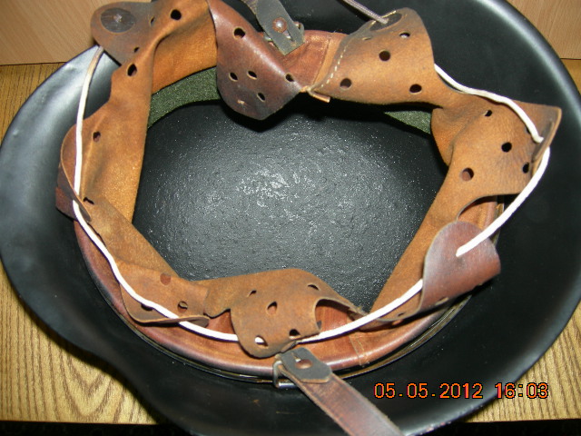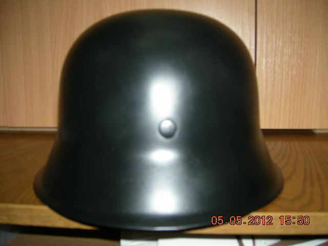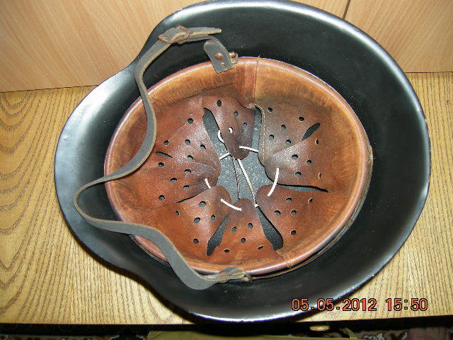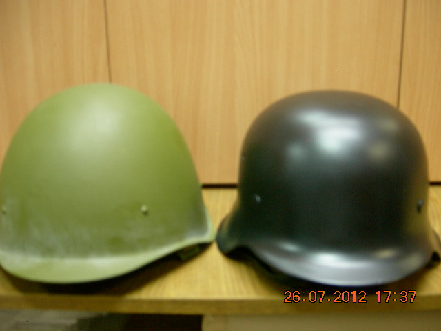 Каска вроде М-42, размер как я понимаю 66 ? , фото исходника нет, покупал лет пять назад уже отреставрированную ( так как покупал для участия в слете -байкеров, перекрасил в черный цвет , наклеил "эмблемы- переводки" , но потом закрасил и их), подшлемник естественно " новодельный"( чей не знаю, покупал уже с ним) Цена 450 грн+ пересыл, резерв в теме