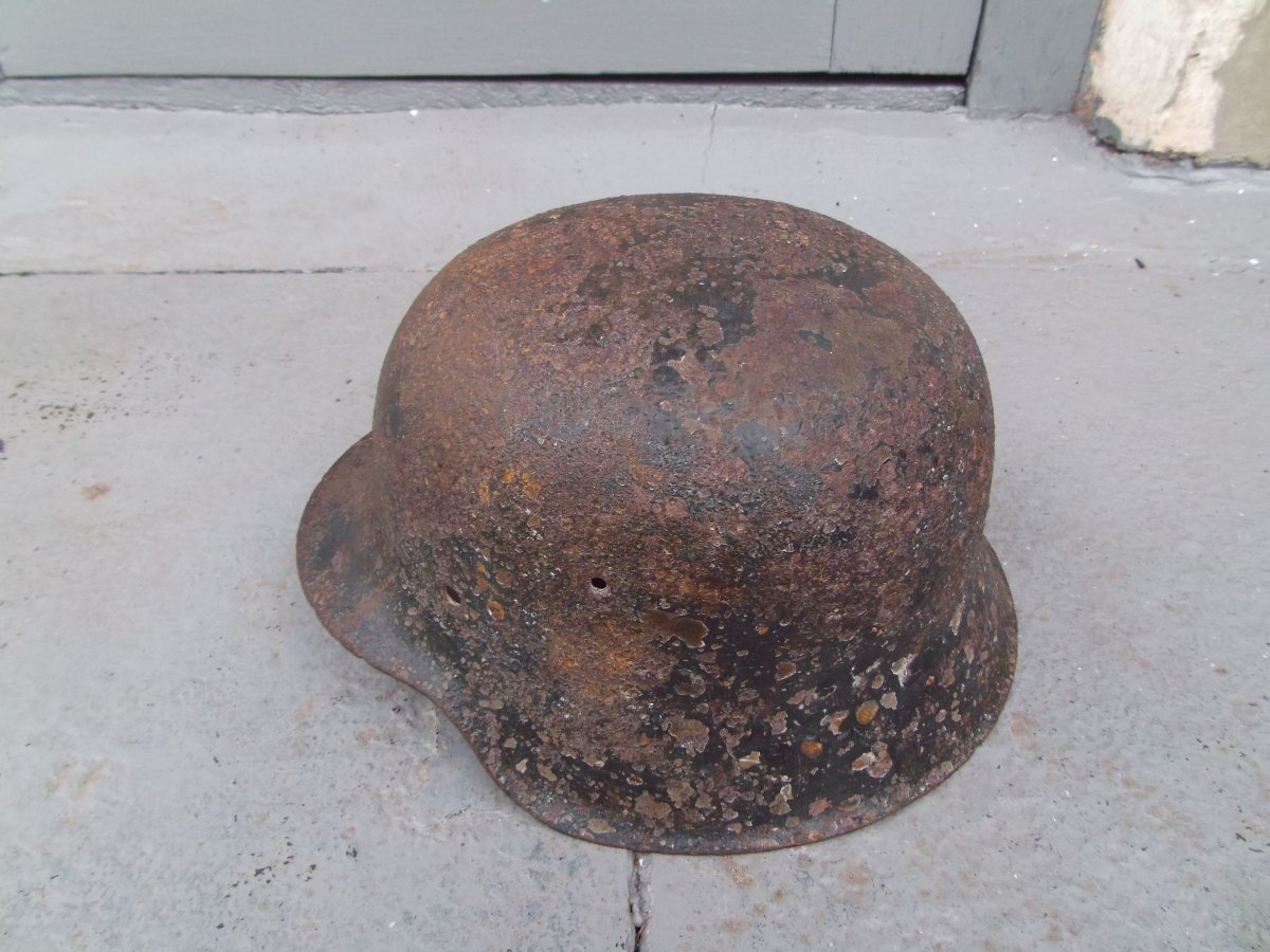 сталевий шолом.М.42. без реставрації.розмір.доволі великий.на голову 59.60 розміру.виміри в см.зовні по кламерам мінімум 68см в обємі.Присутне клеймо у вигляді ...157.Аззаду на внутрішній стороні шолома. Також виявлено нерозбірливе клеймо на зовнішній стороні шолома збоку на вісочній частині зліва у вигляді цифр.або букв.нерозбірливо.По окрасу..Зовні залишки окрасу фельдграу..темно сірого.На внутрішній частині стійкий окрас по типу радянського.темно зеленого. Каска важка.гниль.тріщини та пробоїни відсутні.Вартість шолома 1000грн.Доставка Укопоштою 20 грн.Новою поштою .доставка оплачується покупцем.
