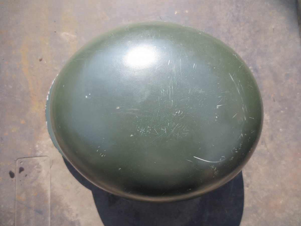 Прошу помочь в оценке шлема М 35/64, покупался 15 лет назад на слете коллекционеров и любителей истории в Харькове, все это время участвовал в реконструкциях, можно сказть боевой изначально целый, крепкий без пулевых и осколков, не гнилой, местами есть конечно шпаклевка но немного( фото исходника к сожалению нет). Наружный обруч подшлема оригинал алюминевый 1940 год, правда в двух местах ремонтровался, усиливался пластнами (на фото), фурнитура ремешка также оригинальная алюминиевая, кламмеры оригинал с клеймами. Из новодела внтутренний обруч с пружинами и кожа(ранний бундес). Есть серийный номер 3823. Вообщем как то так, сколько в таком сохране и комплектации может стоить, начинающим реконструкторам самое оно или на полку как антураж